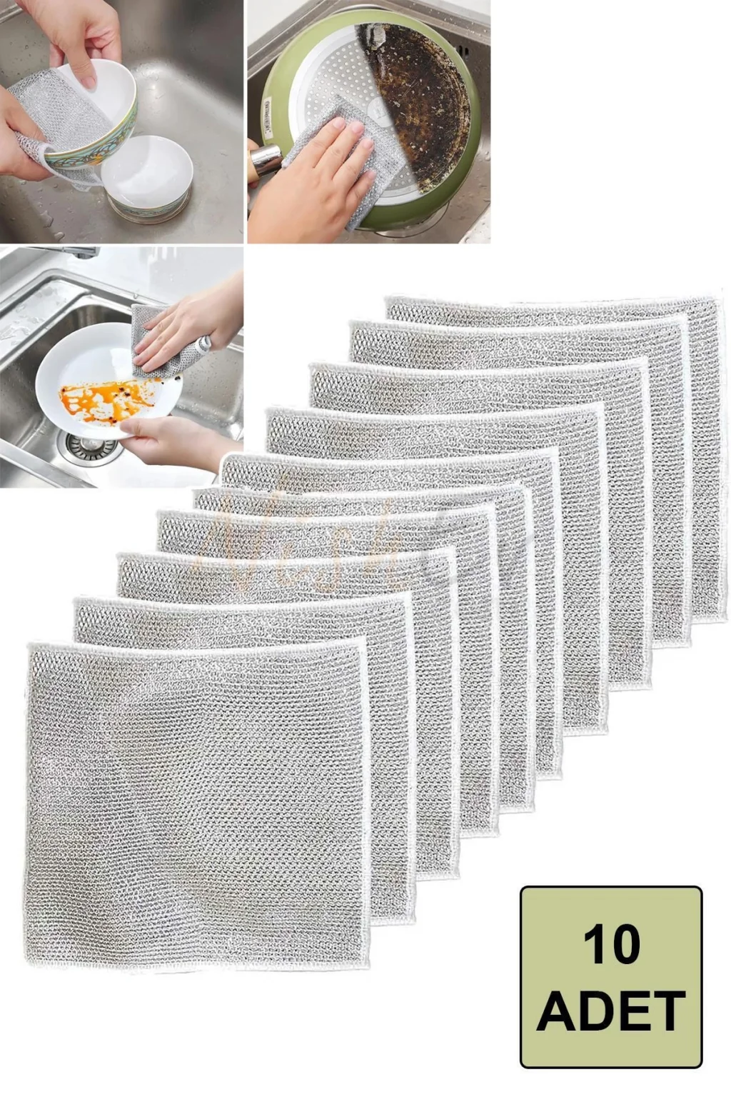 Çift Katlı Çekici Çelik Tel Bulaşık Bezleri – 10 Adet