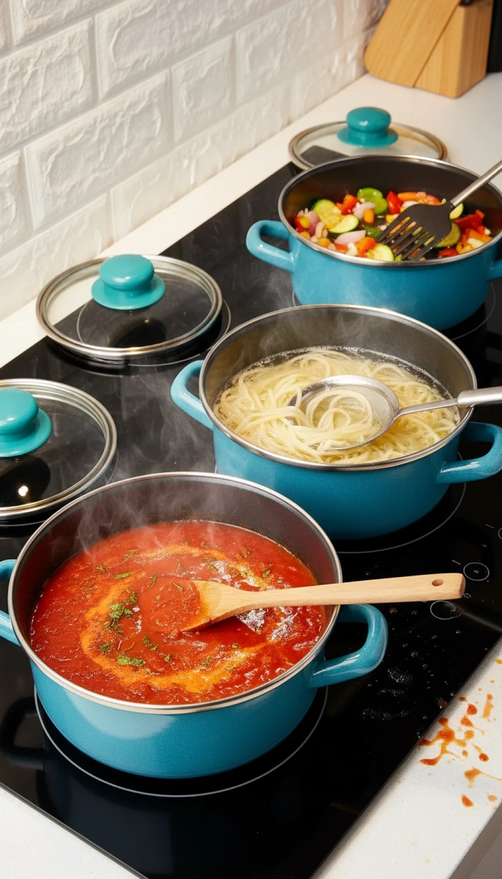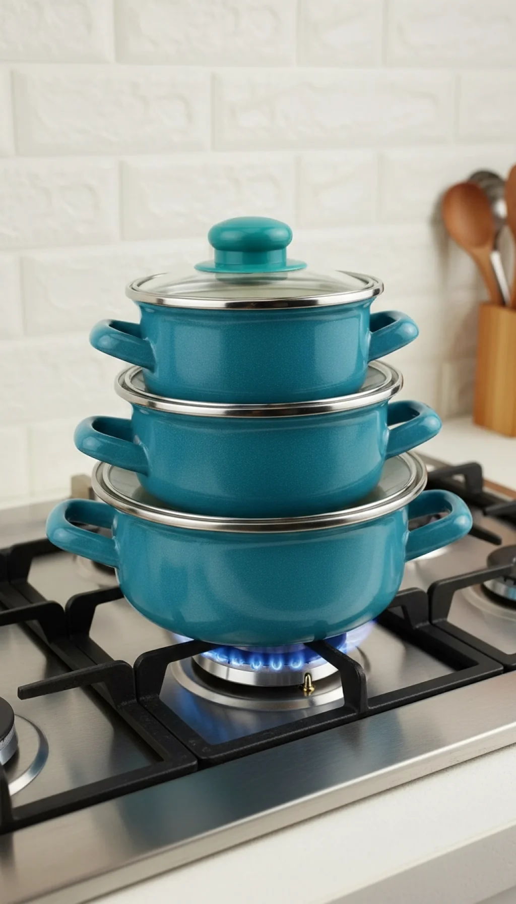 Bu kompakt tencere seti, 12 cm, 14 cm ve 16 cm kapasiteleriyle evdeki her pişirme ihtiyacını karşılar.