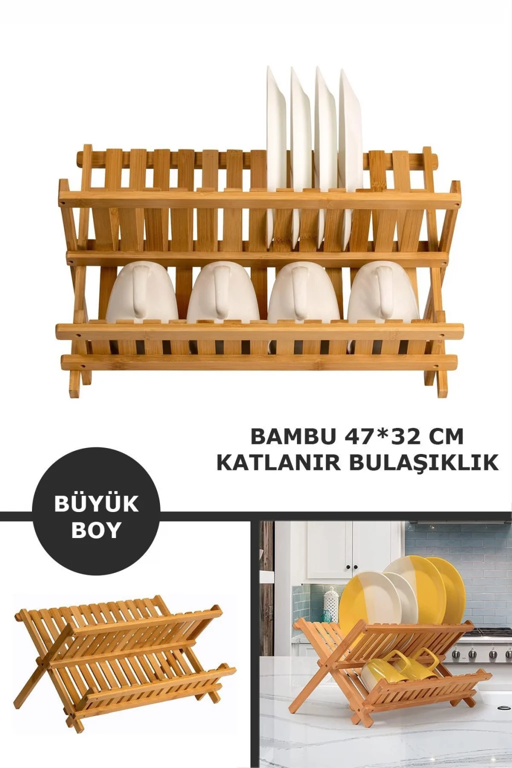 Doğal bambu ağacından üretilen bu şık 2 katlı tabaklık, mutfaklarınızda hem fonksiyonellik hem de estetik sunar. Geniş 47x32 cm ölçüleriyle büyük boy tabaklarınızı rahatlıkla yerleştirir, X-şekilli katlanabilir tasarımı sayesinde kullanım sonrası yerden kolayca saklanır.