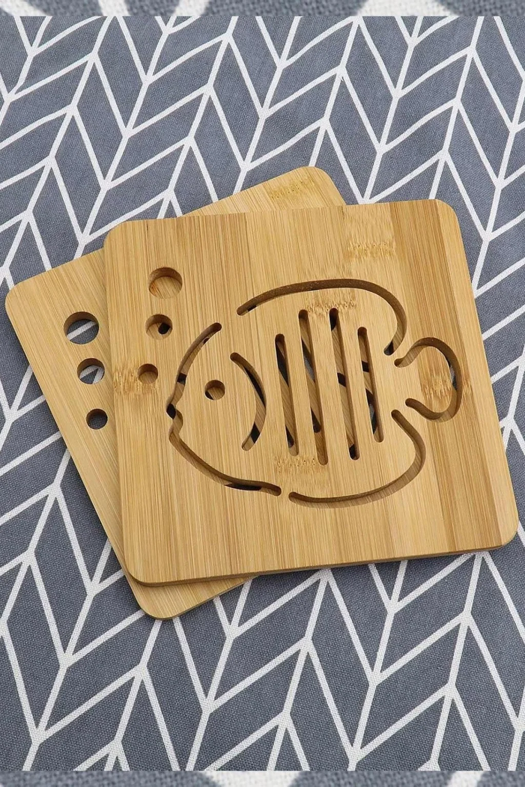 Bu 2'li Bambu Balık Desenli Kare Nihale seti, mutfağınıza hem fonksiyonellik hem de estetik katar. %100 doğal bambudan üretilmiş yapısı sayesinde hem çevreye duyarlı bir seçenek sunar, hem de uzun ömürlü kullanımı garantiler.