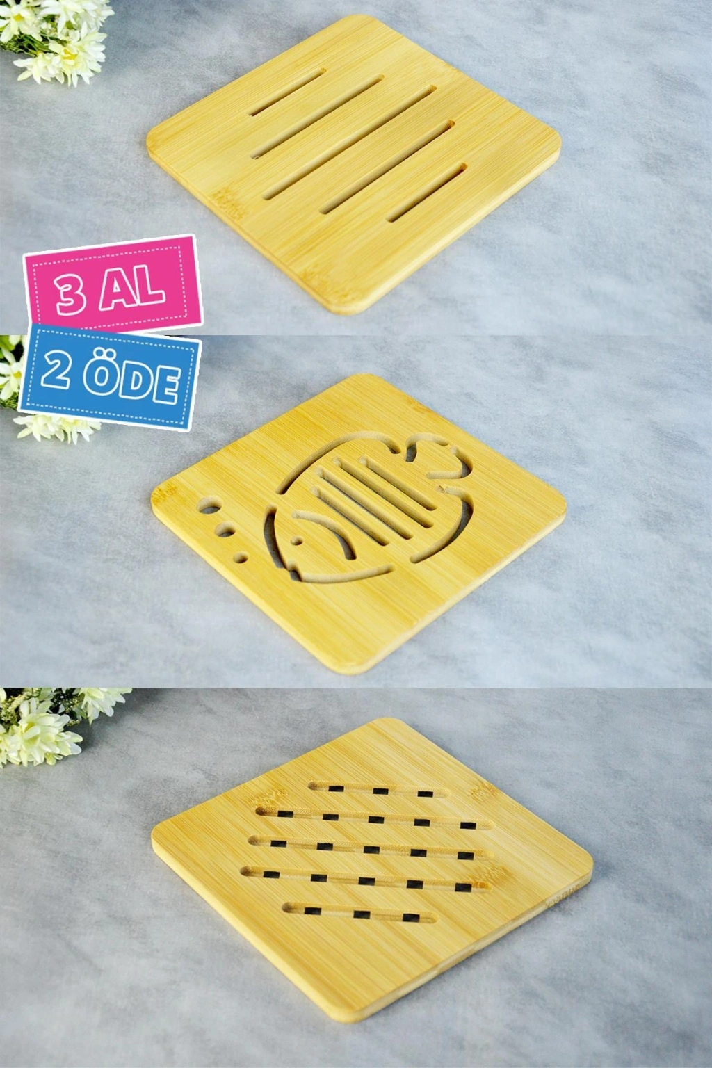 Doğal ahşap malzemesiyle üretilmiş, dayanıklı ve uzun ömürlü kullanım sunar; Kare nihale tasarımı, modern ve şık bir görünüm kazandırırken, yatay desenleriyle estetik bir dokunuş sağlar; 3 adet nihale seti, hem kişisel kullanım için idealdir hem de hediye olarak tercih edilebilir; 2 alana 1 hediye fırsatı sunar;