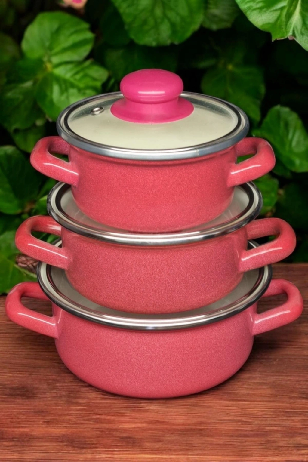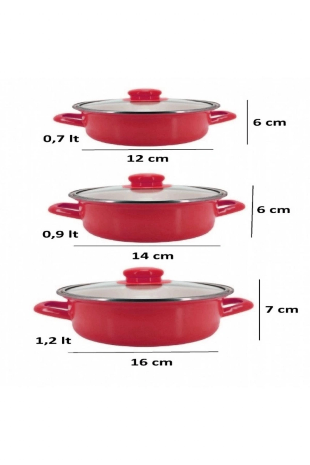 6 Parça Mini Emaye Tencere Seti 12/14/16 Cm – Kırmızı
