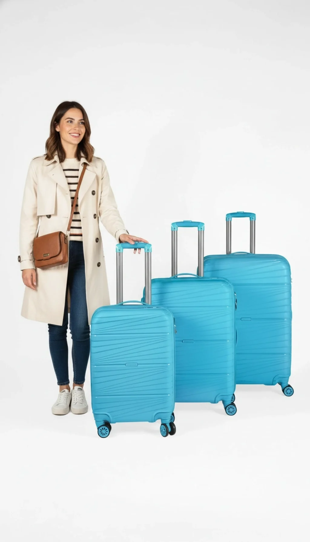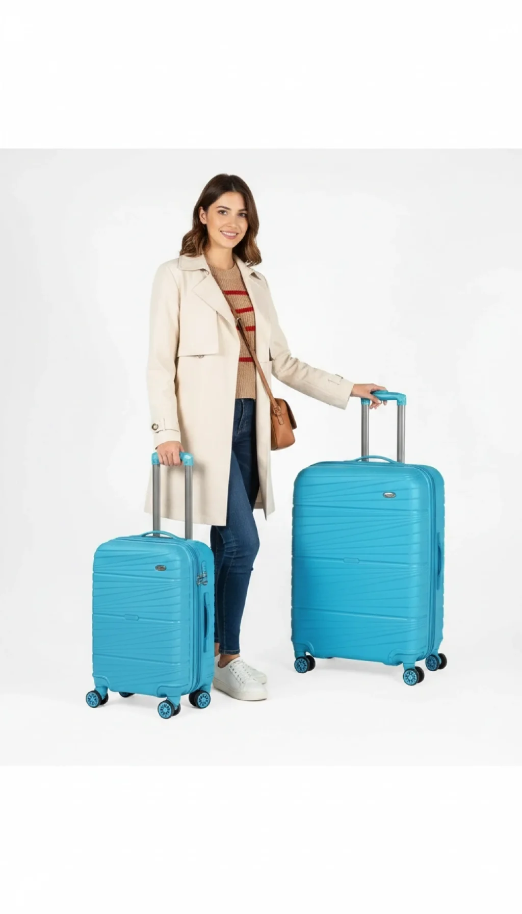 Tatil ruhunu yansıtan canlı turkuaz rengi, en ileri teknoloji materyal ile buluştu. Nishev 901 Saf PP 3’lü Valiz Seti, sadece şıklığıyla değil, %100 saf polipropilen (PP) gövdesi sayesinde sunduğu "maksimum dayanıklılık" ile de seyahatlerinizin vazgeçilmezi olacak.