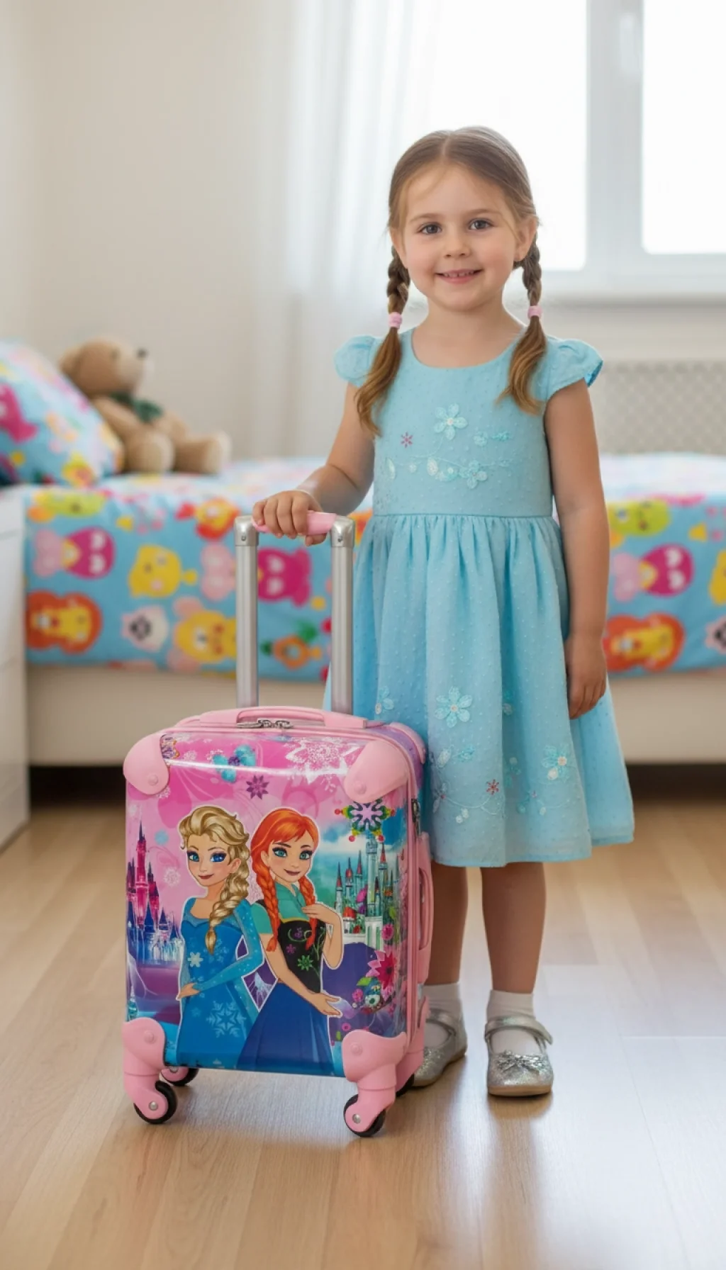 Çocukların seyahatlerini daha bağımsız ve eğlenceli hale getirmek için tasarlanan bu özel valiz, şıklığı ve fonksiyonelliği bir araya getiriyor. En sevilen karakterlerle süslenmiş renkli tasarımı sayesinde minikler artık kendi eşyalarını taşımak için sabırsızlanacak!