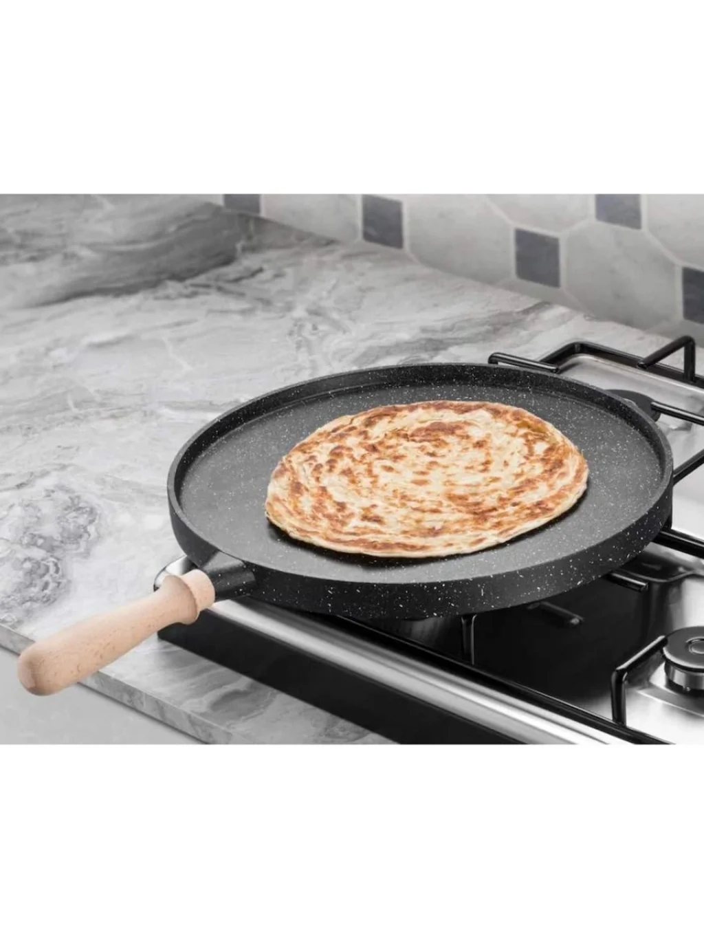 Premium Ahşap Kulplu Granit Gözleme & Bazlama Tavası 36cm