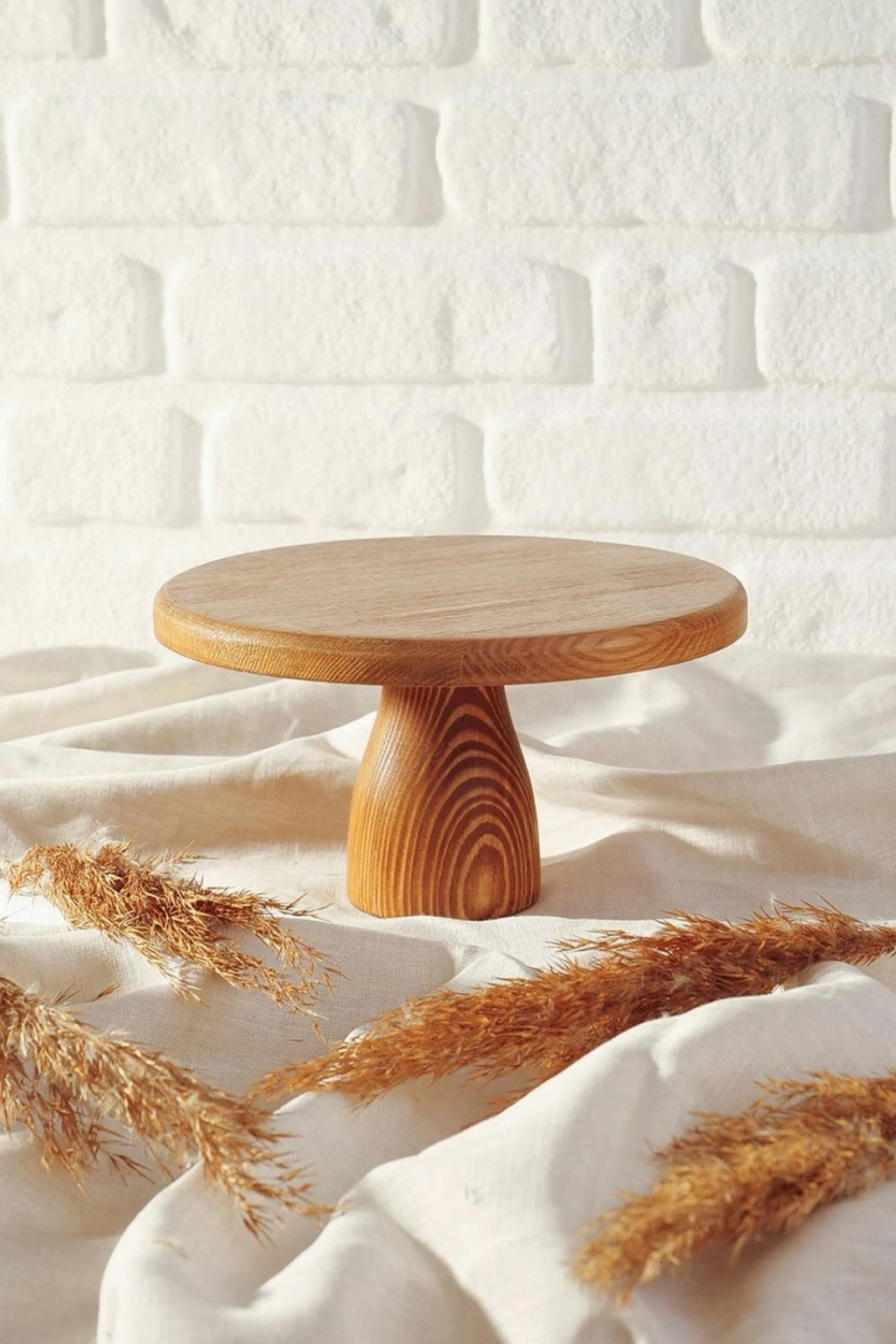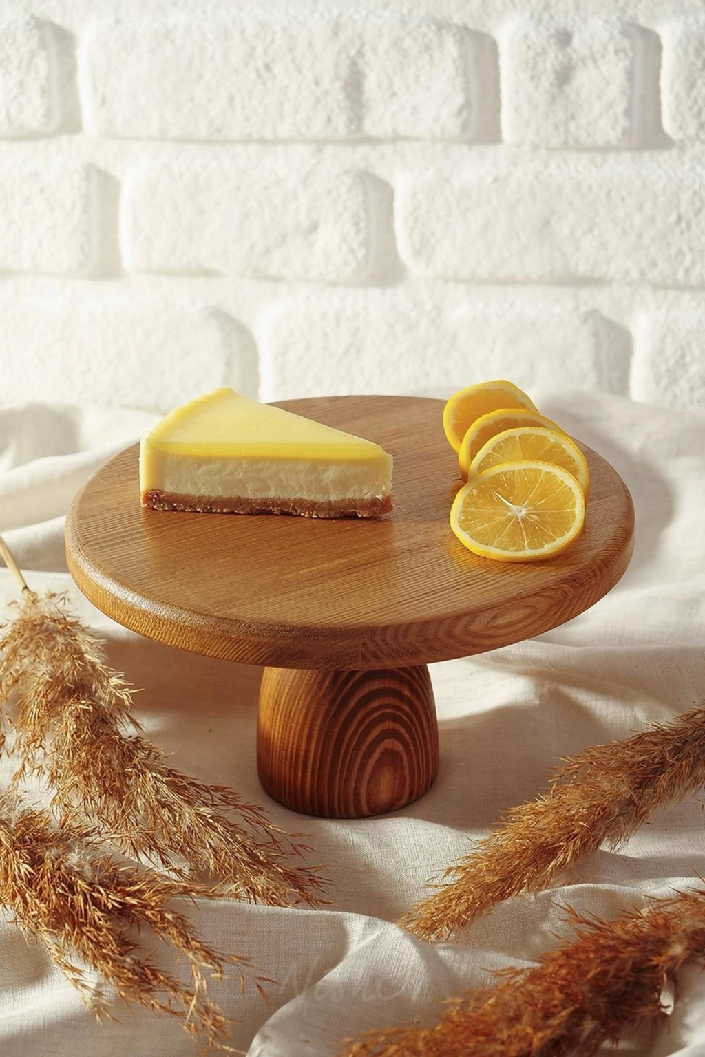 Nishev.com Evini Sev Ahşap Yuvarlak Ayaklı Pasta Sunum Servis Tabağı