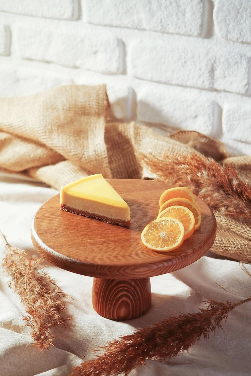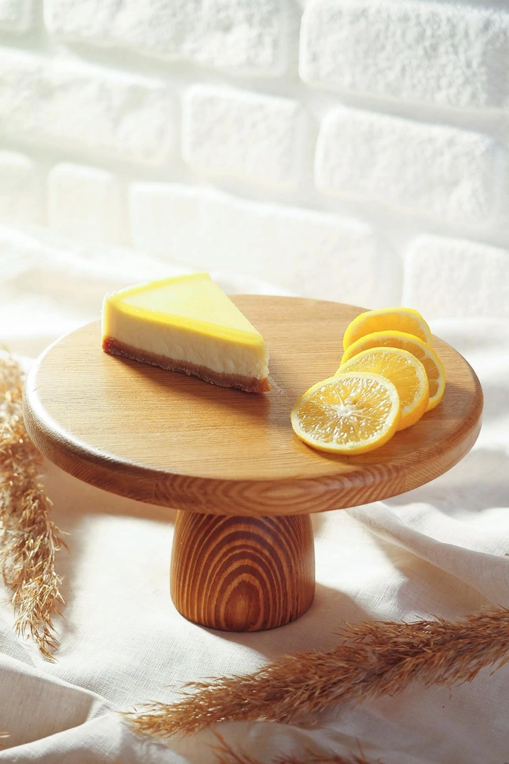 Ahşap Yuvarlak Ayaklı Pasta Sunum Servis Tabağı