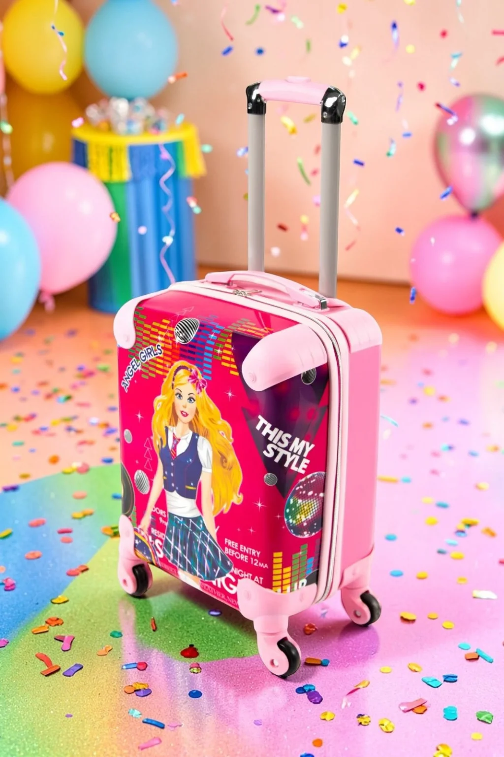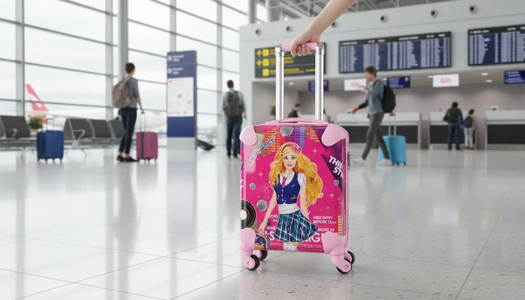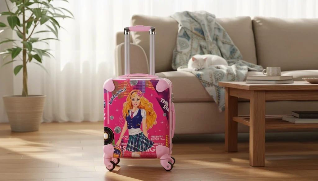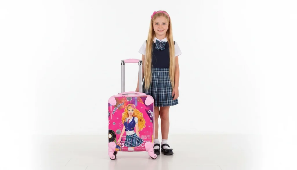 LuxeAmber Pembe ABS Kız Çocuk Valizi, modern tasarımı ve dayanıklı yapısıyla çocukların seyahatlerini eğlenceli hale getiriyor.
