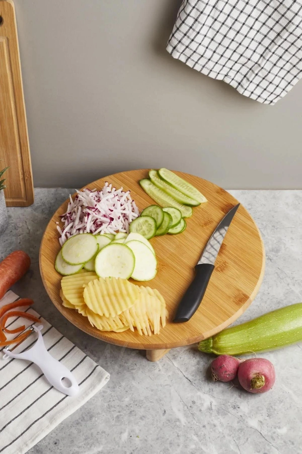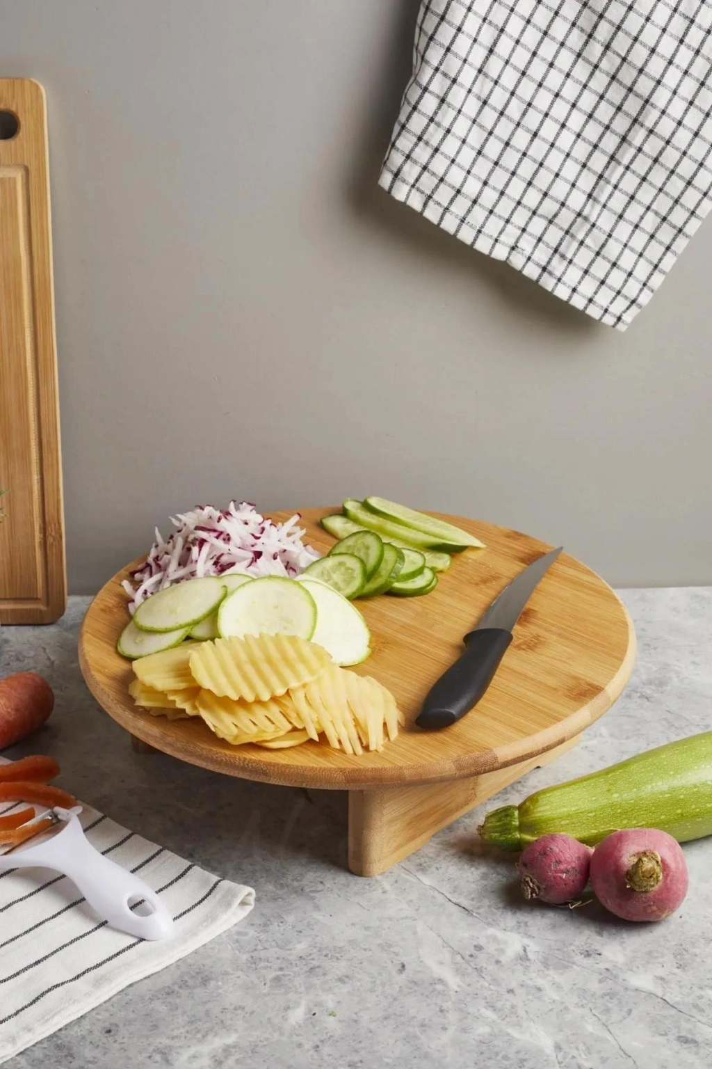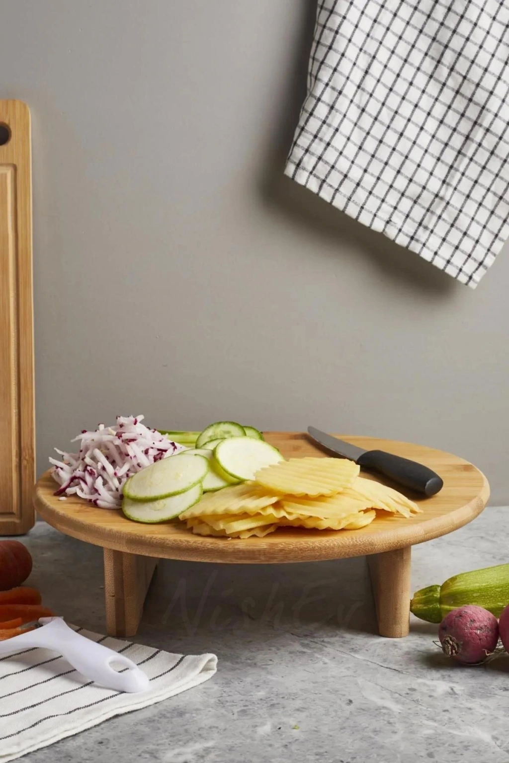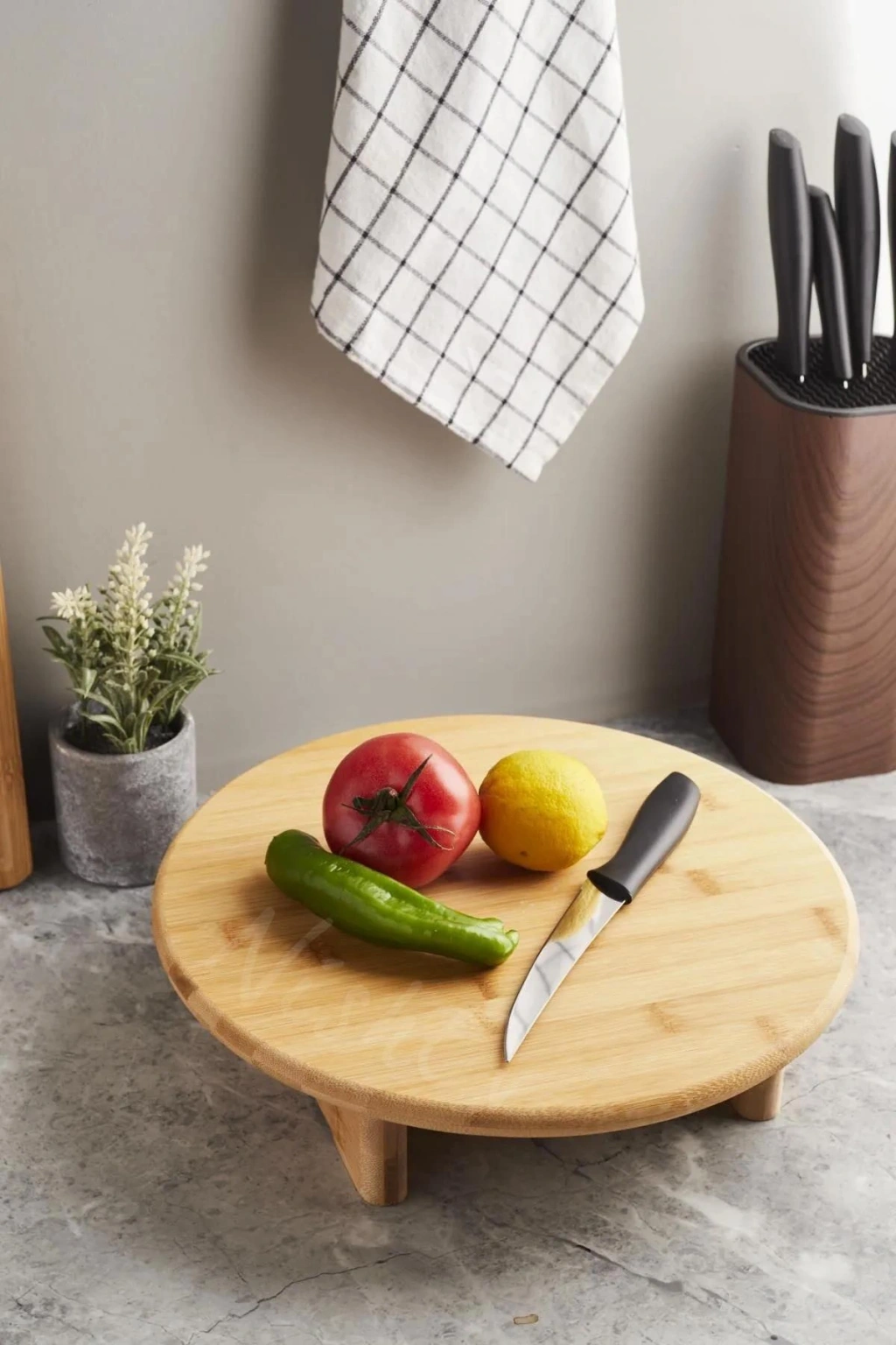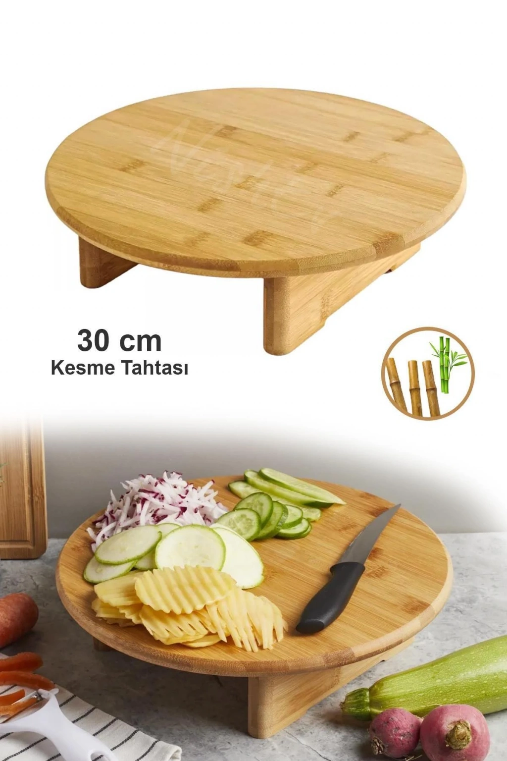 Nishev.com Evini Sev Ayaklı Yuvarlak Kesme Doğrama Tahtası Sunum Tahtası Bambu 30 Cm