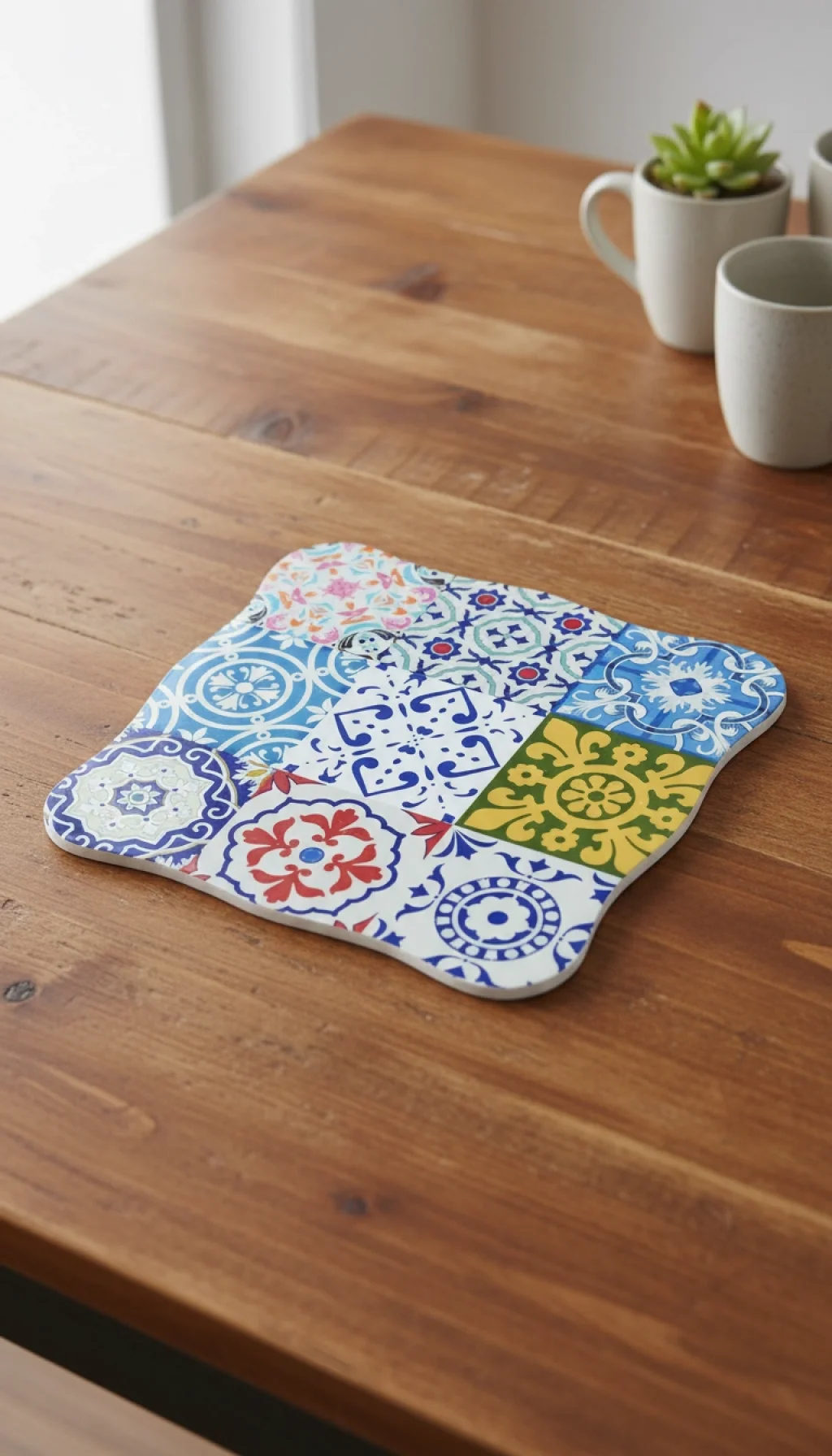 Doğal bambu ağaçlarından elde edilen mandala desenli tabak, mutfağınızın konseptini tamamlayan eşsiz bir dokunuş sunar.