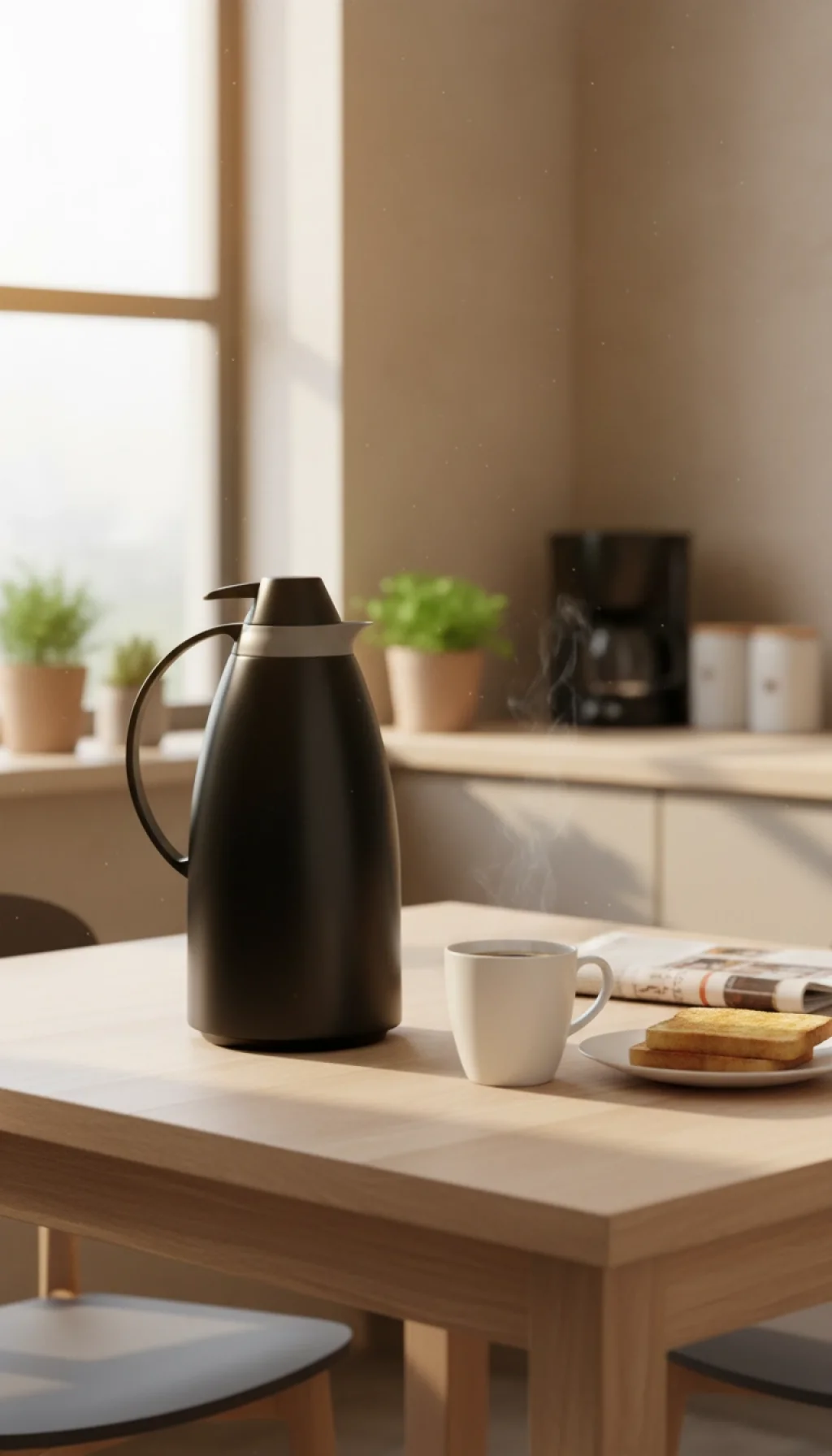 Nishev kalitesiyle tasarlanan siyah termos, sadece bir mutfak gereci değil; yaşam alanınıza değer katan bir aksesuardır. İçeceğiniz her zaman taze, tarzınız her zaman kusursuz olsun!