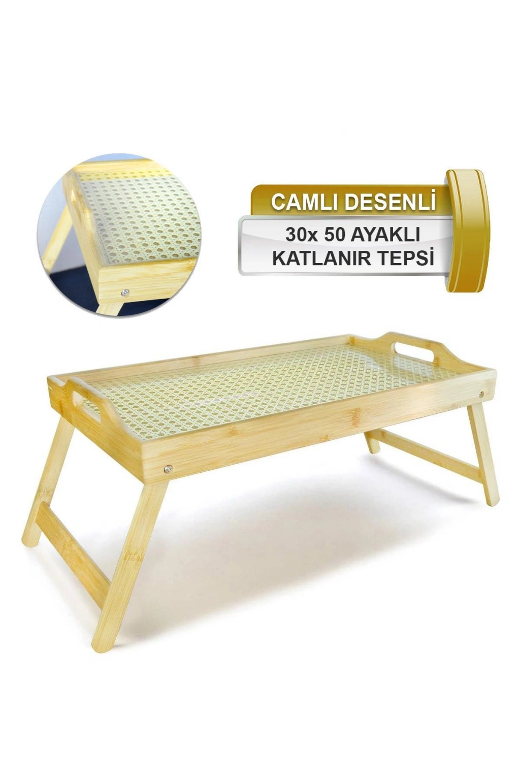 Katlanabilir ayaklar tepsinin düz bir şekilde kullanılmasına ve sallanmamasına olanak sağlar ve depolama sırasında yerden tasarruf eder. Çerçeveli olması tepsiye dökülebilecek herhangi bir sıvının yatağa veya kanepeye akmasını engeller.