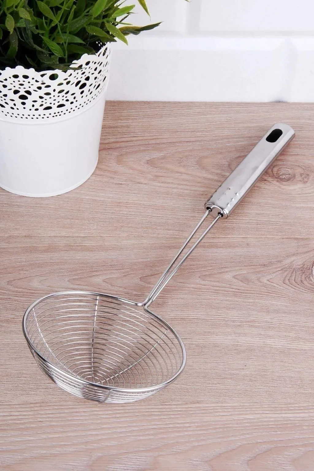Yüksek kaliteli paslanmaz çelikten üretilen bu kevgir, hem dayanıklı hem de sağlıklı bir kullanım sunar. Geniş tel sepeti ve uzun sapı sayesinde tencerenin en alt köşesine bile rahatça ulaşabilir, yağ süzme işlemini zahmetsiz bir şekilde gerçekleştirebilirsiniz.