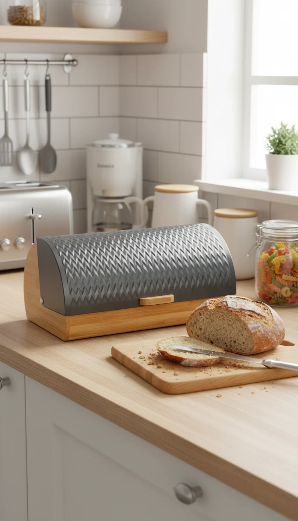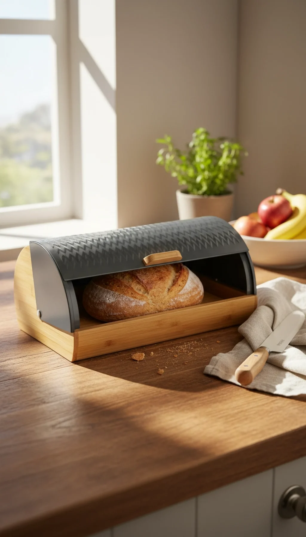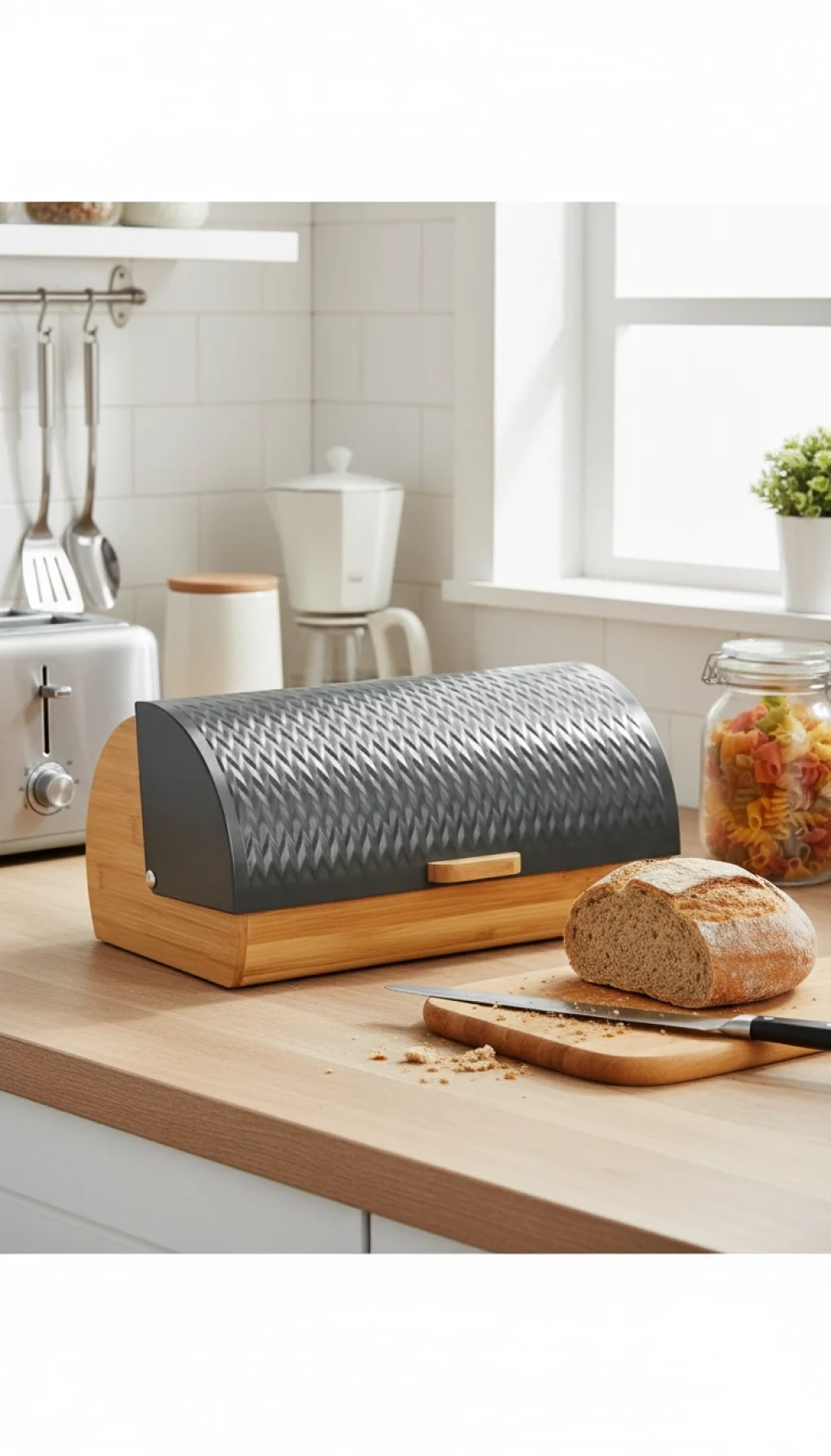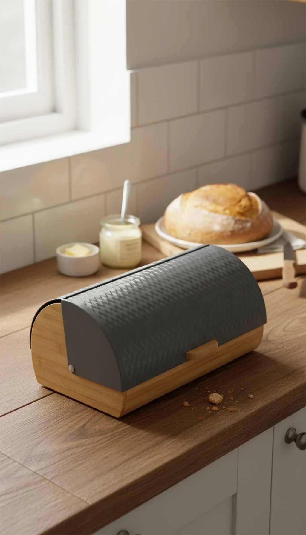 Bu ekmek kutusu, evinizin mutfak köşesine lüks bir dokunuş katarken, sürdürülebilir malzeme kullanımıyla doğaya da duyarlı bir seçimdir. Mutfak dekorasyonunuza zenginlik katan bu ürün, hem günlük kullanıma hem de özel davetlere uygun bir şıklık sunar.