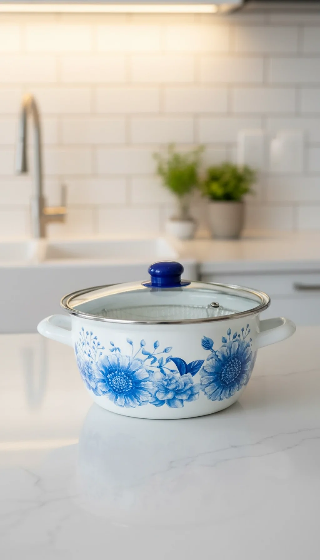 Torino’nun özenle tasarlanmış Mavi Emaye Kızartma Tenceresi, mutfaklarınızda hem estetik hem de performans sunar. 22 cm çapındaki geniş iç hacmi, yemeklerinizi rahatça pişirmenizi sağlar.