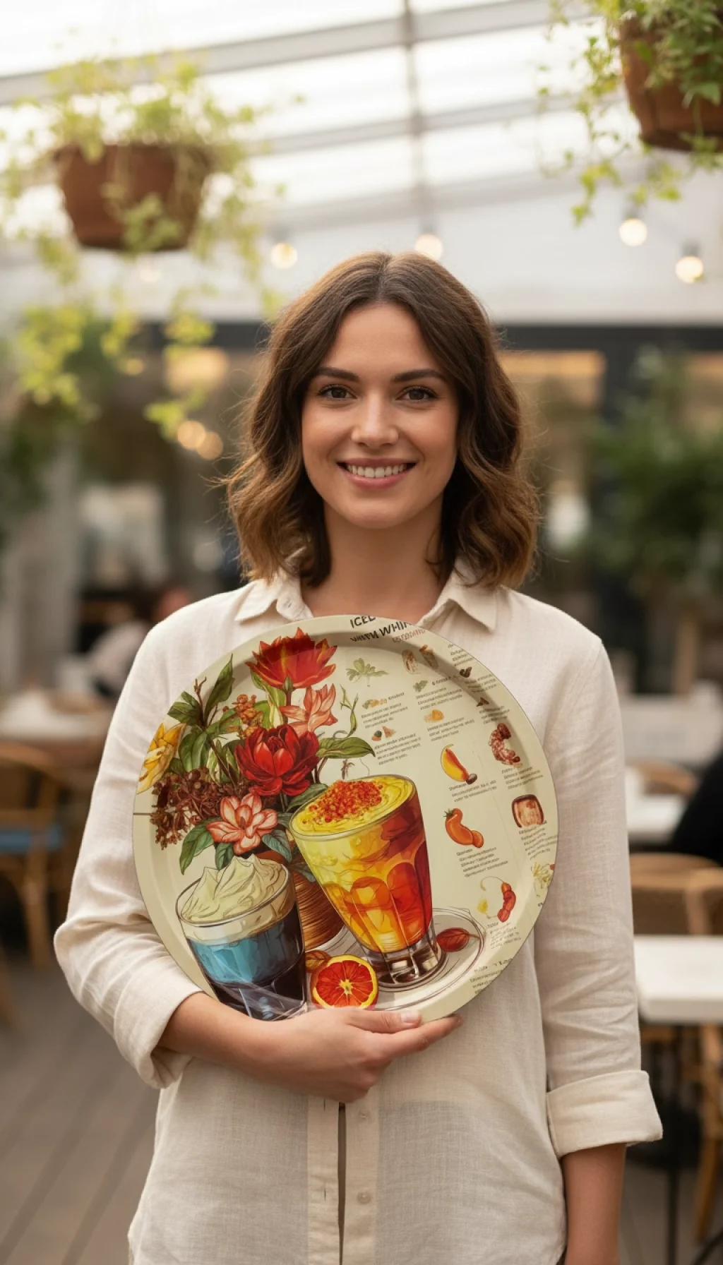 Premium 35 cm Metal Yuvarlak Tepsi – Özel Tasarım