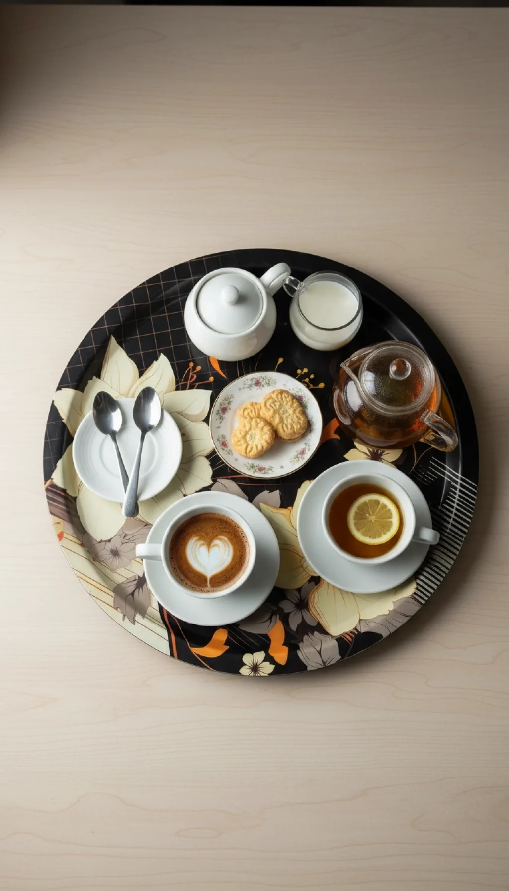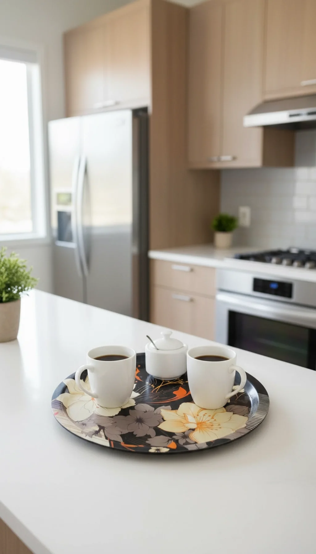 Şıklığı ve fonksiyonelliği bir araya getiren bu tepsi, evinizin veya ofisinizin dekorasyonuna zarif bir dokunuş katmak için mükemmel bir seçimdir.