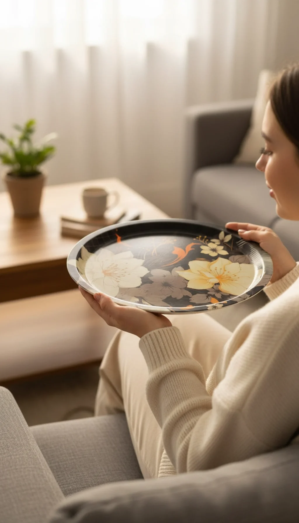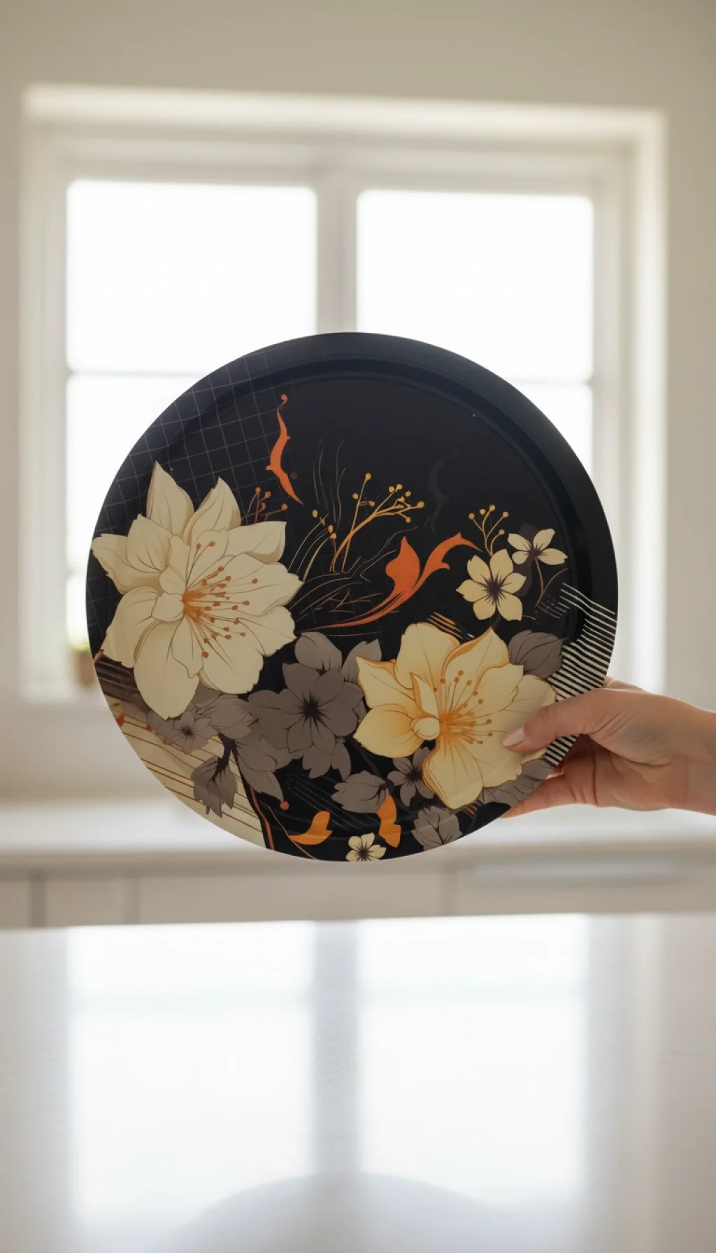 Premium 35 cm Dekoratif Metal Yuvarlak Tepsi – Özel Tasarım