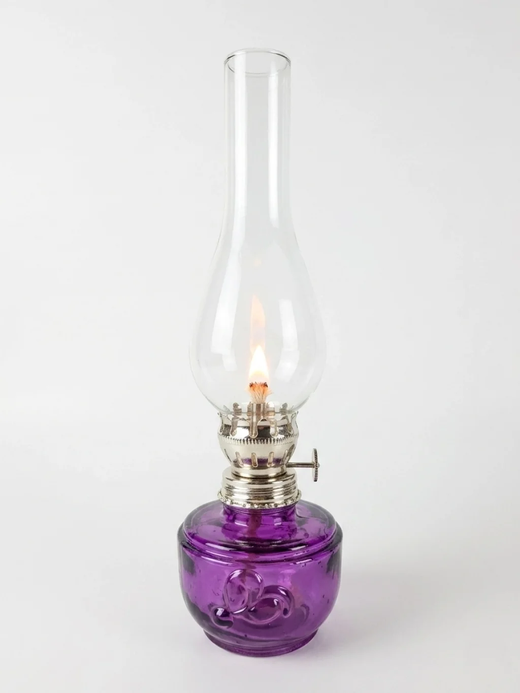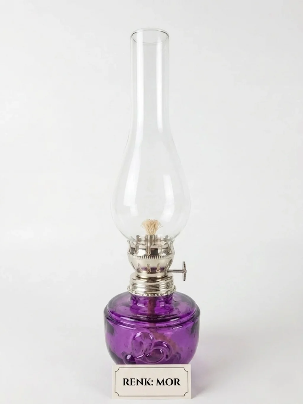 mor gaz lambası, dekoratif gaz lambası, renkli cam gaz lambası, nostaljik aydınlatma, küçük boy gaz lambası, Nishev dekorasyon, vintage mor lamba, otantik ev dekoru