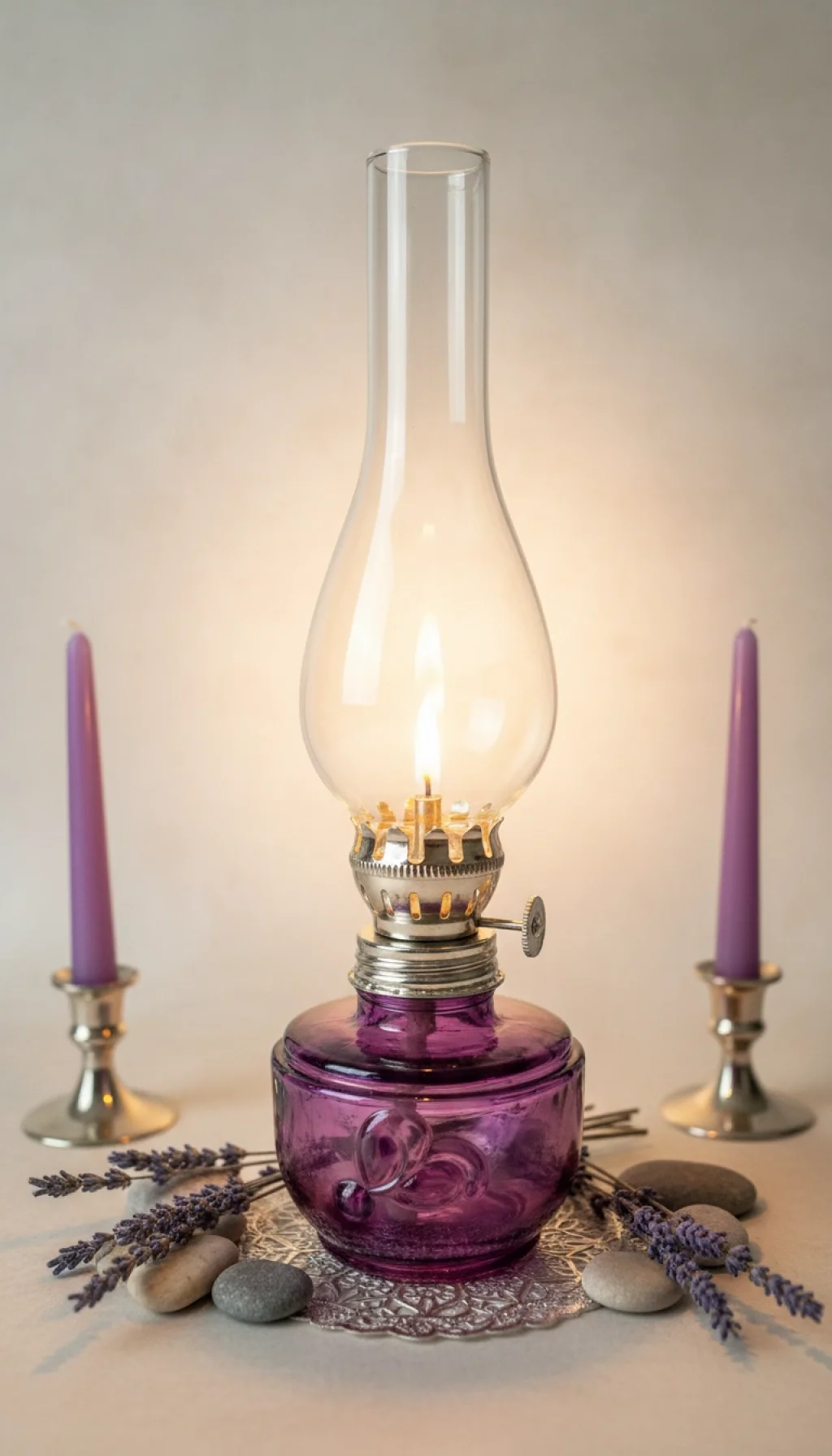 Mistik Bir Dokunuş: Nishev Mor Cam Dekoratif Gaz Lambası (24 cm)