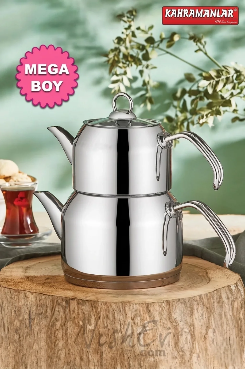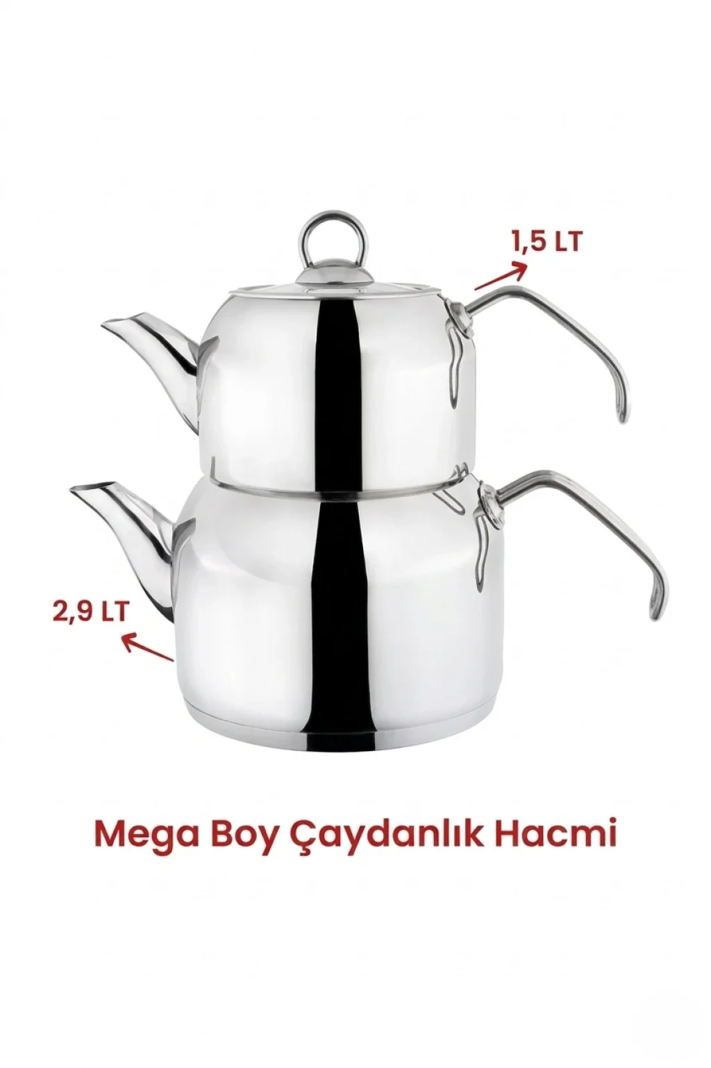 Geniş ailelerin ve misafiri eksik olmayan evlerin vazgeçilmezi: Delux Premium Mega Boy Çaydanlık Seti. Maksimum kapasiteyi platin serisinin zarif tasarımıyla birleştiren bu set, kalabalık sofralarda çayınızın hiç bitmemesini sağlar.