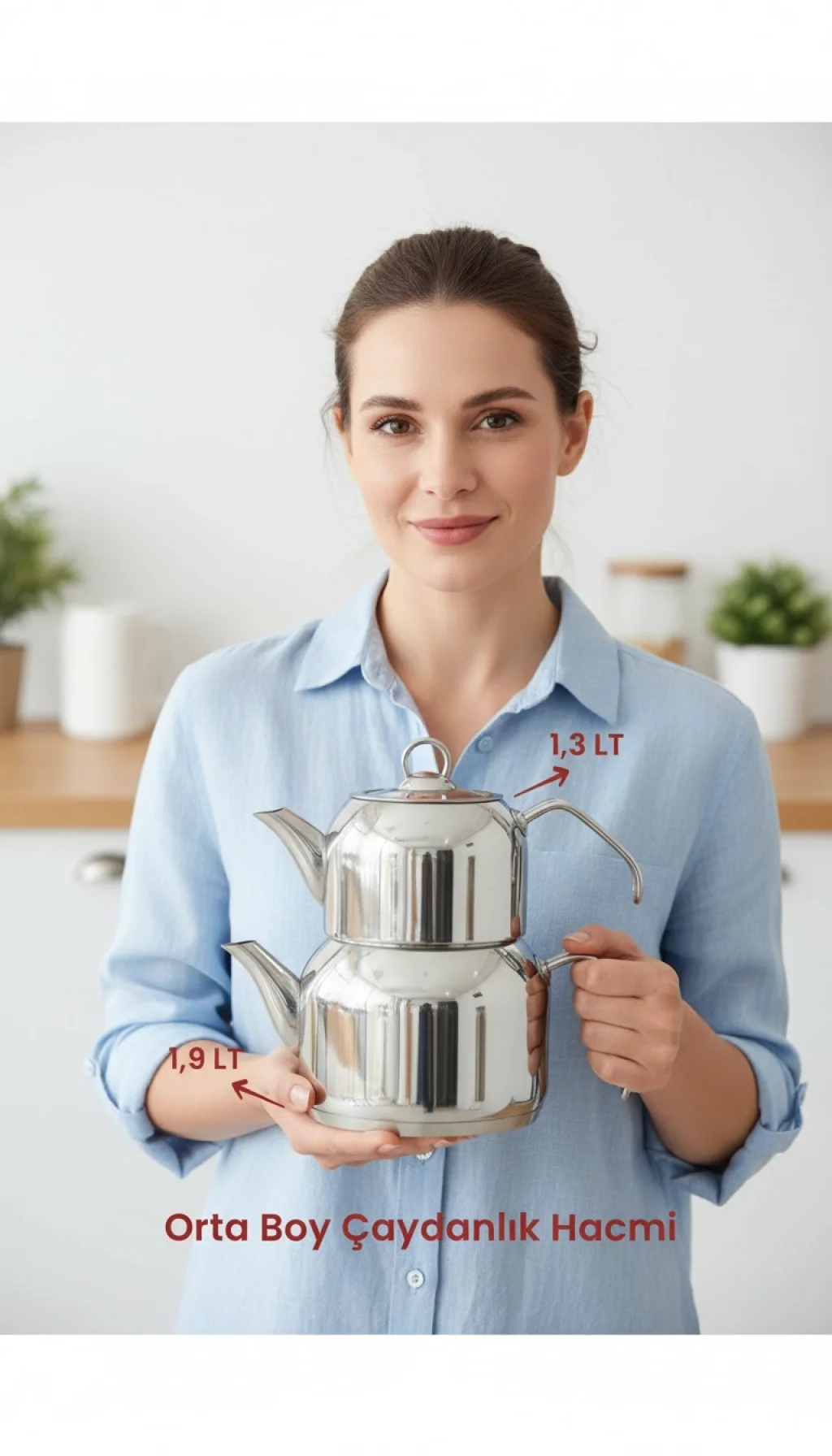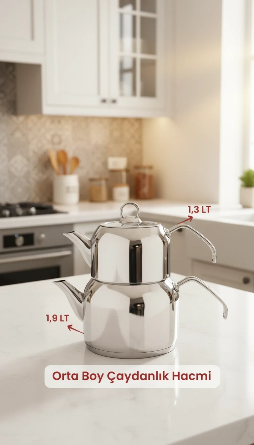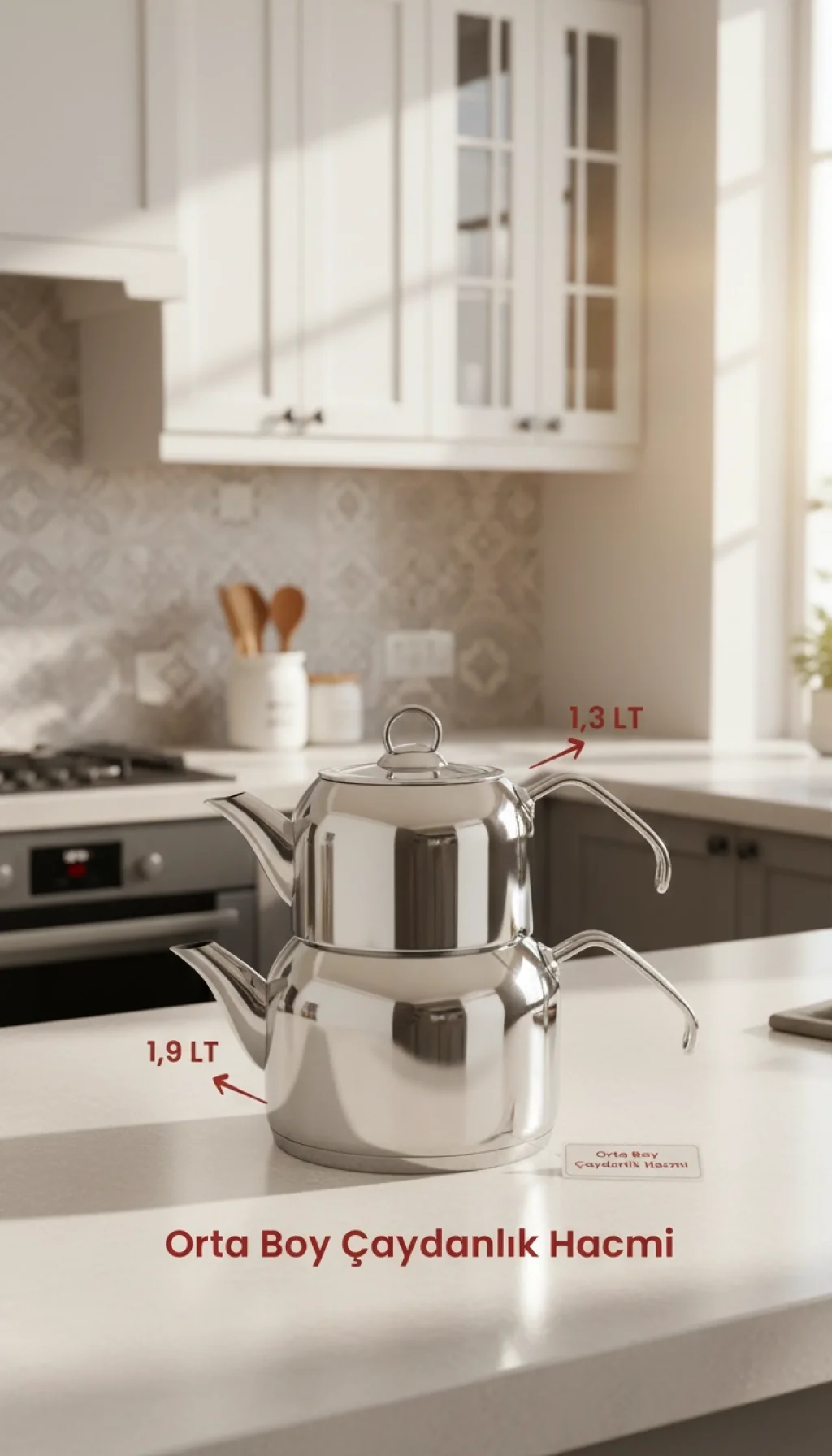 İdeal Kapasite: 1,3 litrelik üst demlik ve 1,9 litrelik geniş alt suluk hacmi ile orta boy aileler ve misafir grupları için en ideal ölçülere sahiptir.