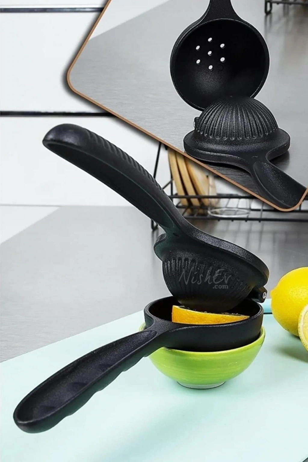 Dayanıklı döküm malzemesi sayesinde uzun ömürlü kullanım sunar; Paslanmaz yapısı ile mutfak tezgahınızda şık ve modern bir görünüm sağlar; 23 cm boyutu, narenciye sıkma işlemlerinizi kolayca yapabilmeniz için idealdir; Limon ve portakal gibi narenciyeleri sıkarken maksimum verimlilik ve kolaylık sunar;