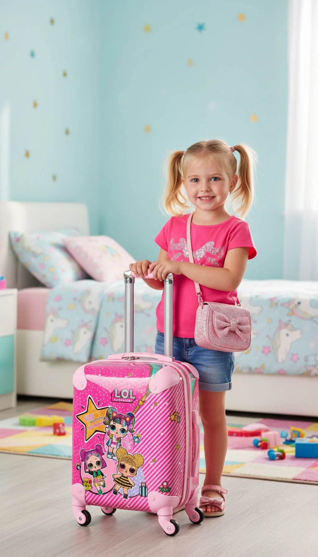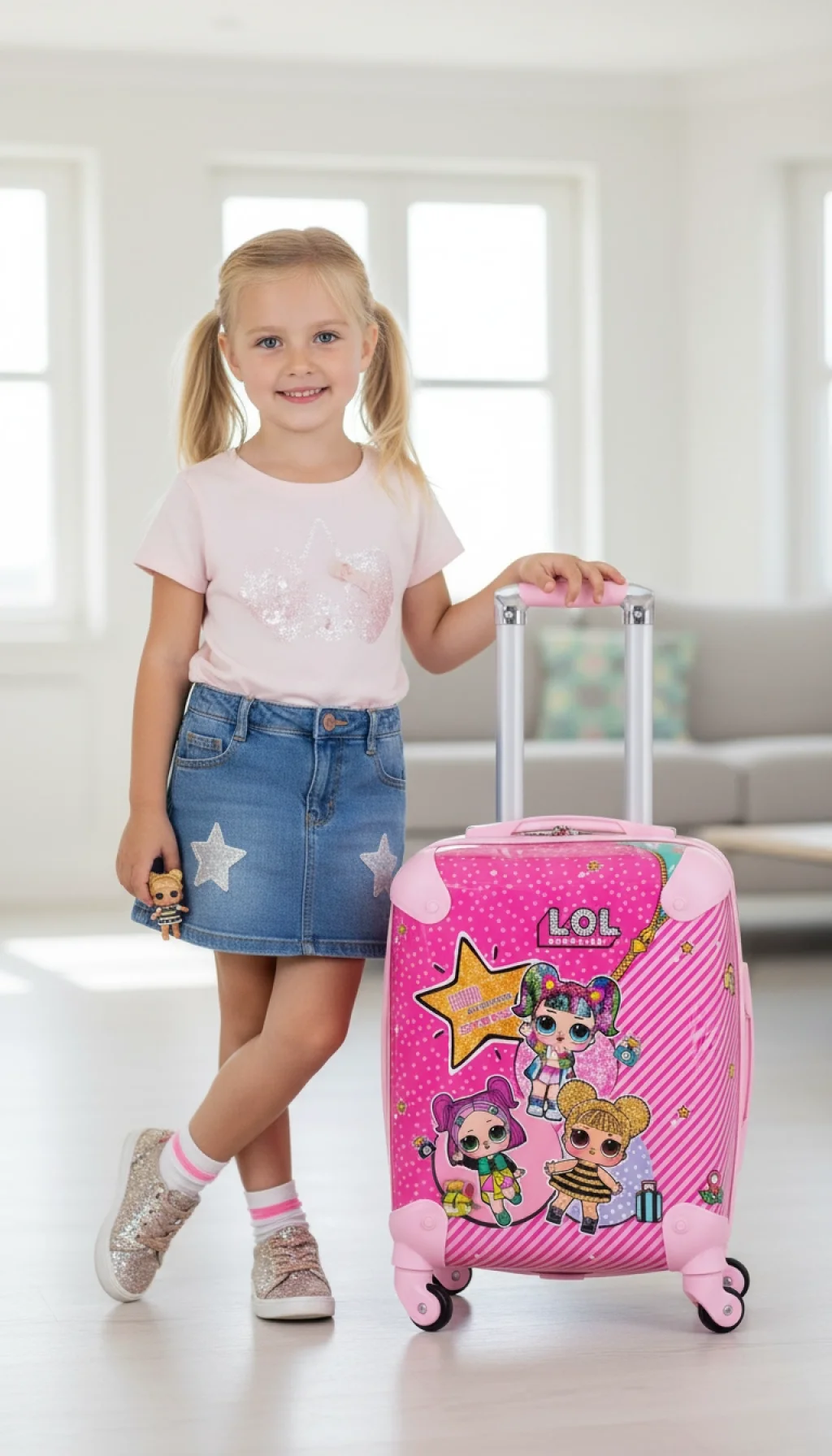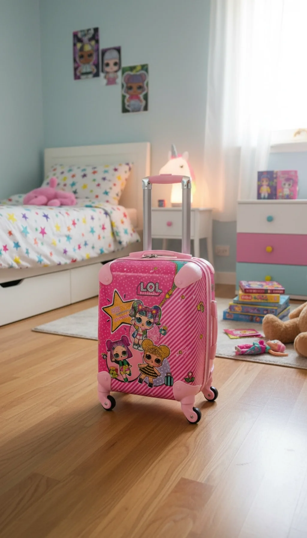 Çocuklar için özel olarak tasarlanmış, Disney karakterleriyle süslenmiş bu pembe valiz, seyahatleri hem eğlenceli hem de pratik hale getirir.