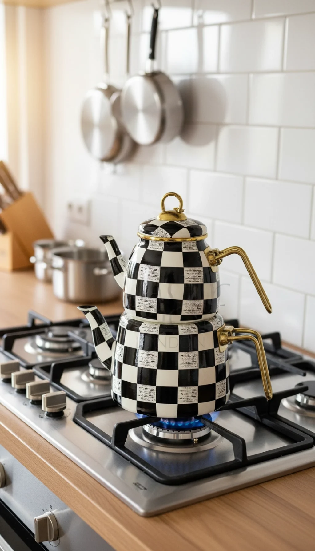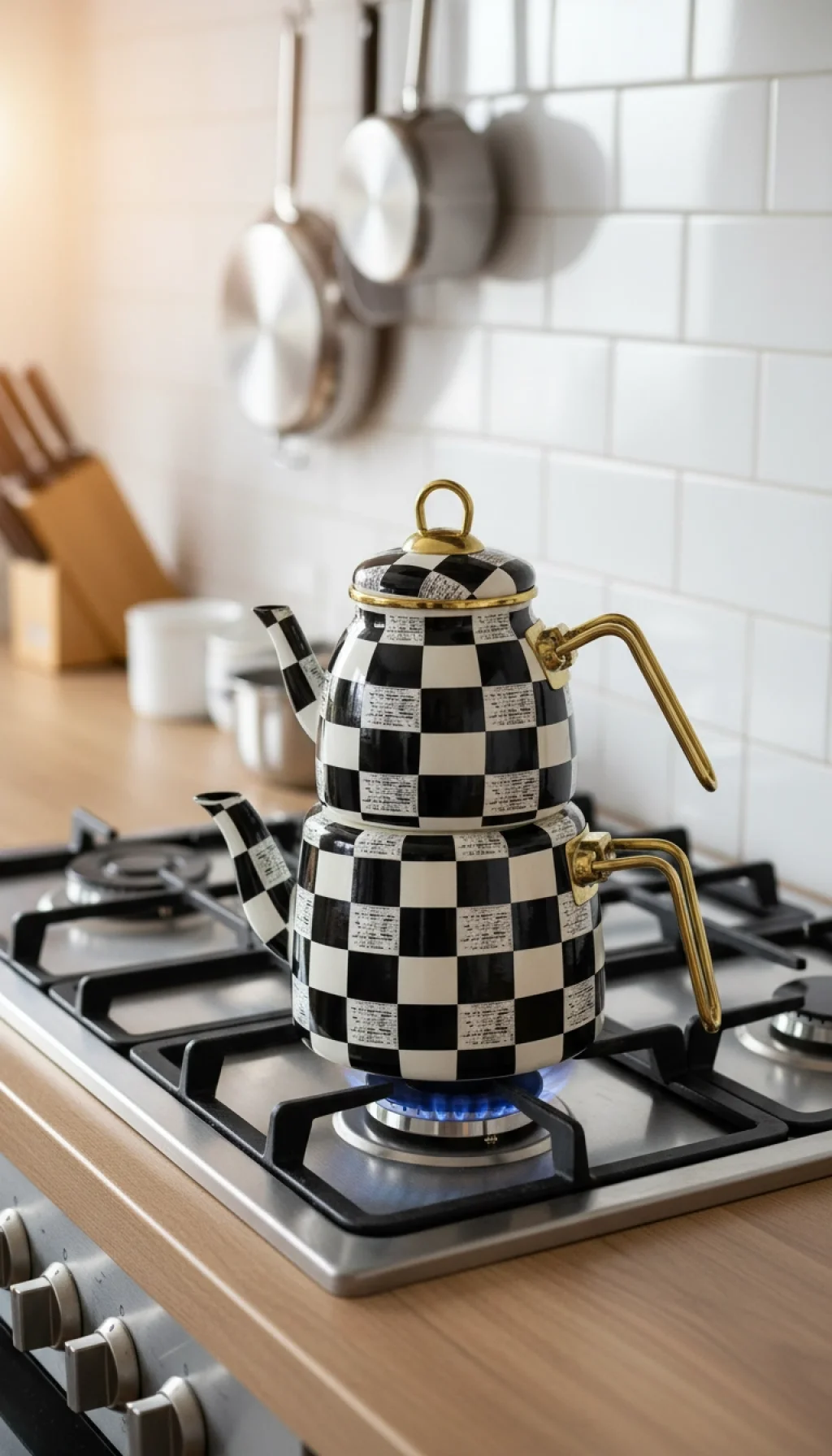 Elite Class Premium Dama Desenli Çaydanlık Seti, geleneksel emaye kaplaması ve modern damalı motifleriyle göz alıcı bir tasarıma sahiptir.