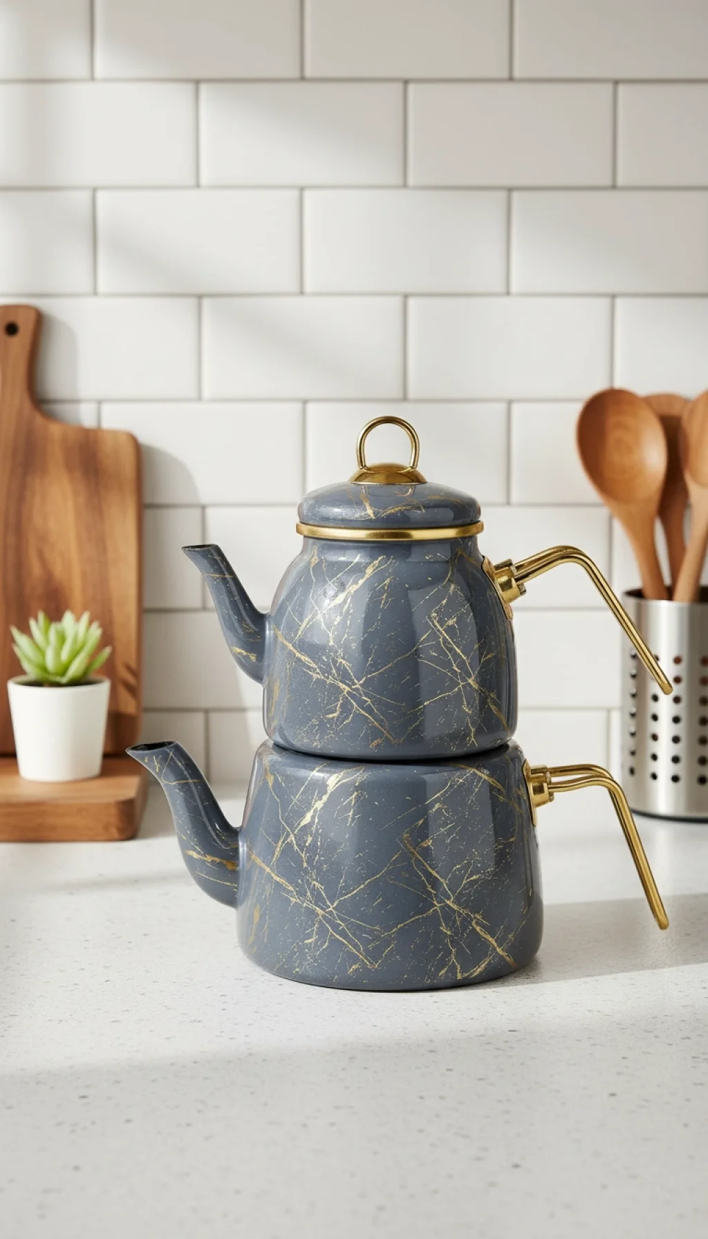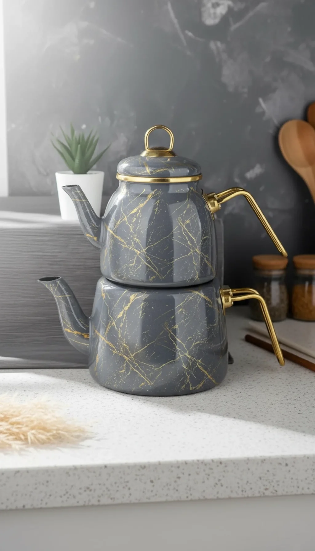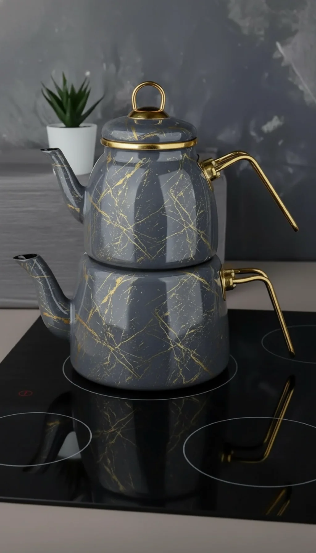 Elite Class Kırık Mermer Çaydanlık Takımı Gri, geleneksel mermer dokusunu modern tasarımla birleştirerek evinize zarif bir dokunuş getirir. İnce işçilik ve yüksek kaliteli seramik malzeme, uzun ömürlü kullanım sağlar.