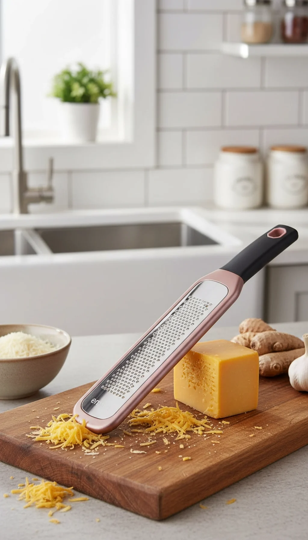 Çok Amaçlı Kullanım: Sert peynirlerden taze zencefile, sarımsaktan çikolata parçacıklarına kadar her türlü malzemeyi ince ve pürüzsüz bir şekilde rendeler.