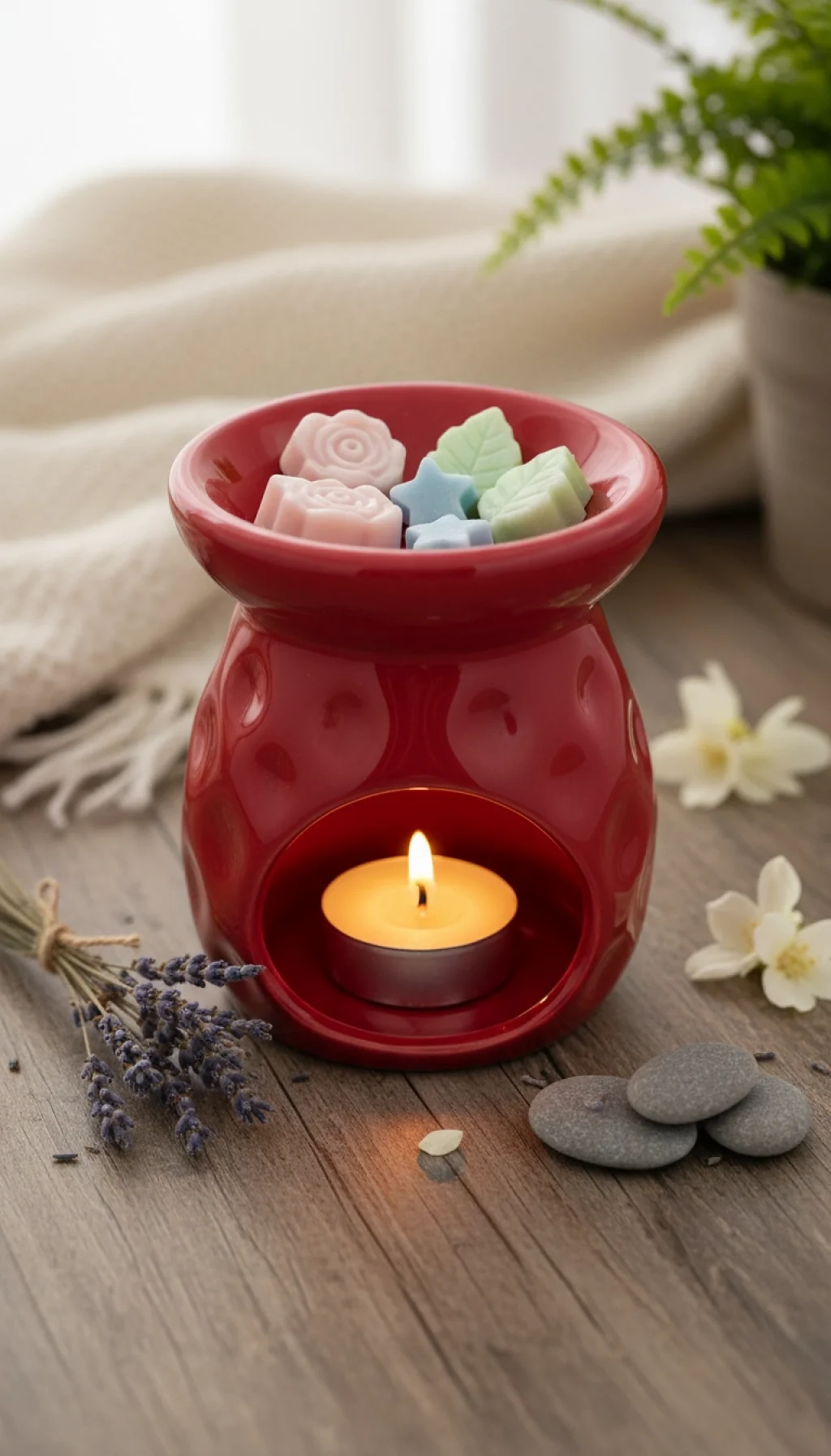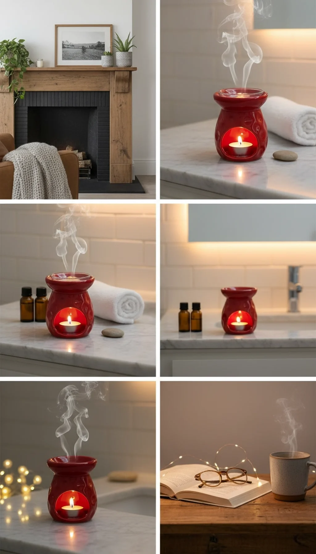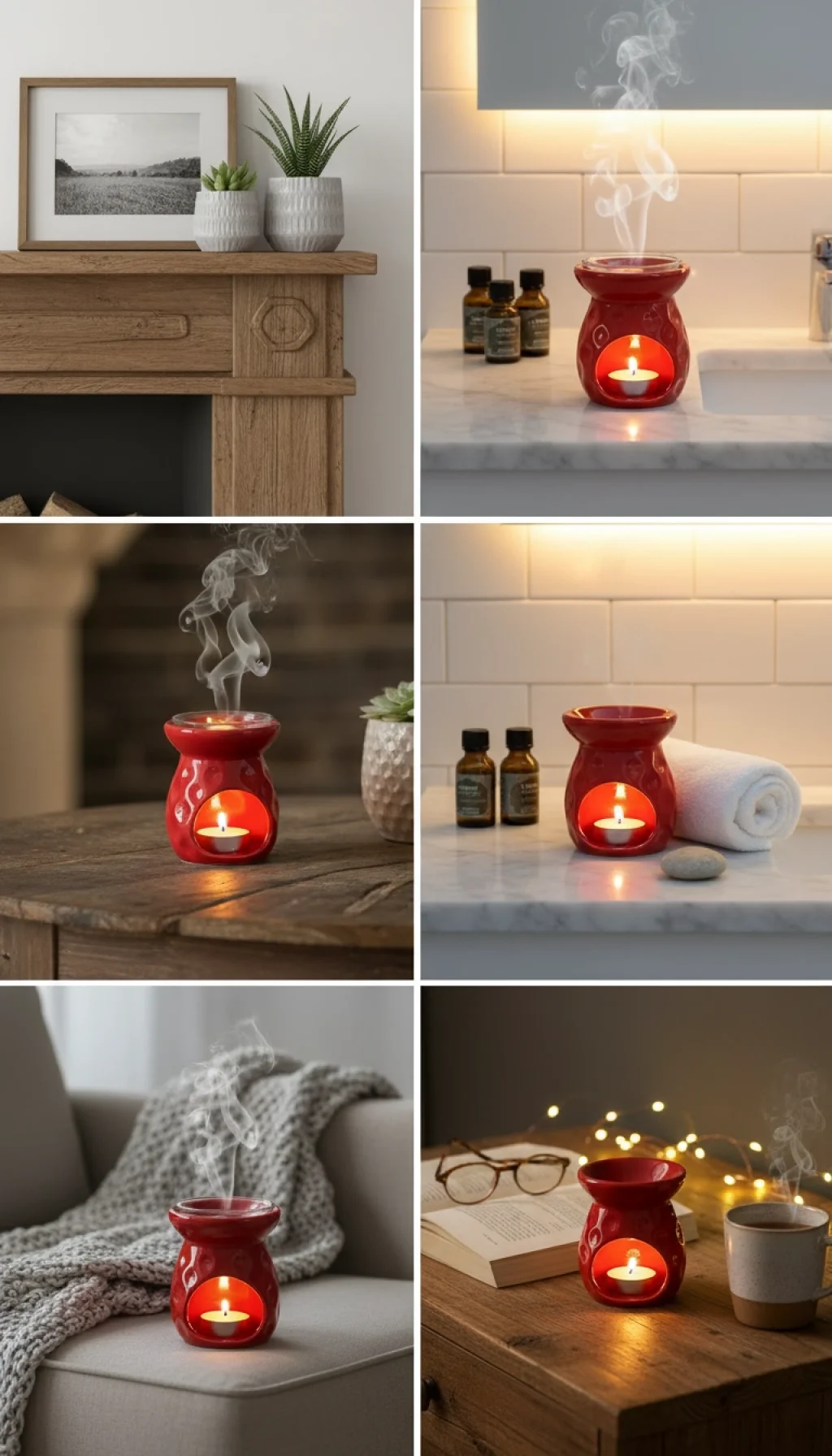Fonksiyonel Tasarım: Derin üst haznesi sayesinde su ve uçucu yağ karışımını uzun süre muhafaza eder, geniş alt mumluk alanı ise tealight mumun kolayca yerleştirilmesini sağlar.