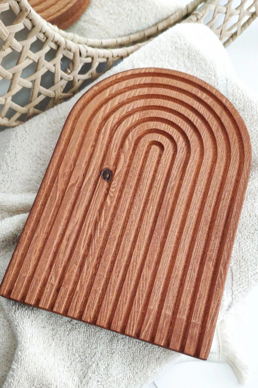 Tek parça halinde sunulan bu kesme tahtası, minimalist ve şık bir sunum deneyimi sunar; Doğal bambu malzemesi ile üretilmiş olup, dayanıklılığı ve estetik görünümü bir arada barındırır; 30x18 cm boyutlarındaki bu kesme tahtası, küçük boyutuyla mutfak tezgahınızda yer kaplamaz ve kolayca saklanabilir; Koyu kahve rengiyle modern ve zarif bir tasarıma sahip olan bu ürün, mutfak dekorasyonunuza sıcak bir dokunuş katar;