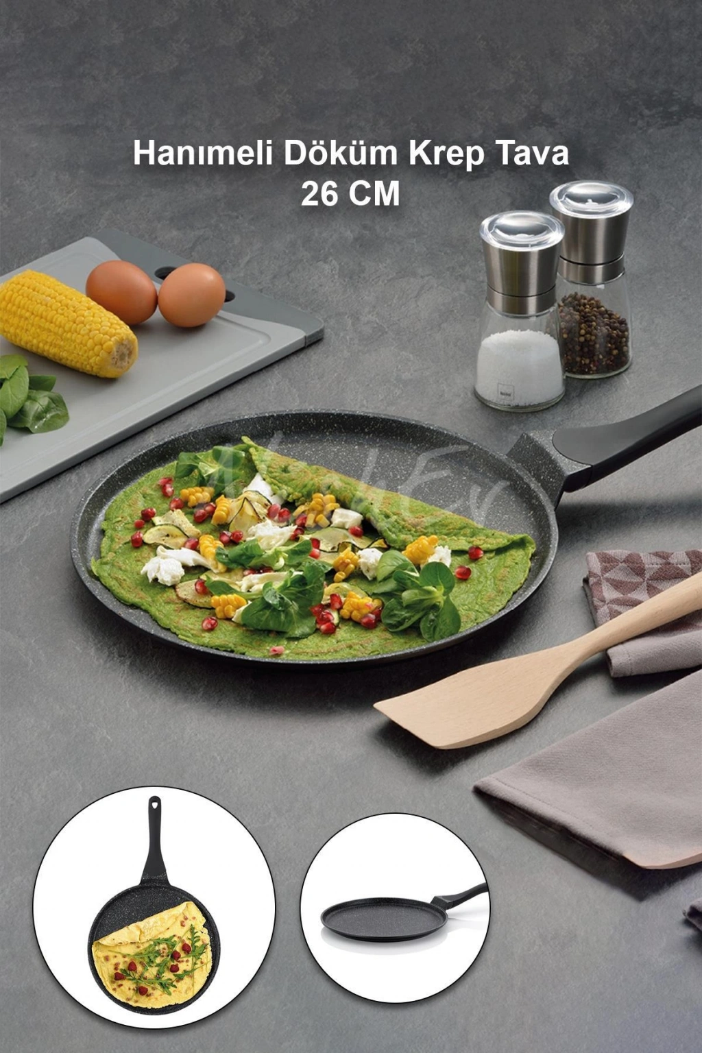 Hanımeli Döküm Krep Tava 26cm – Yanmaz Yapışmaz Çizilmez Koruma