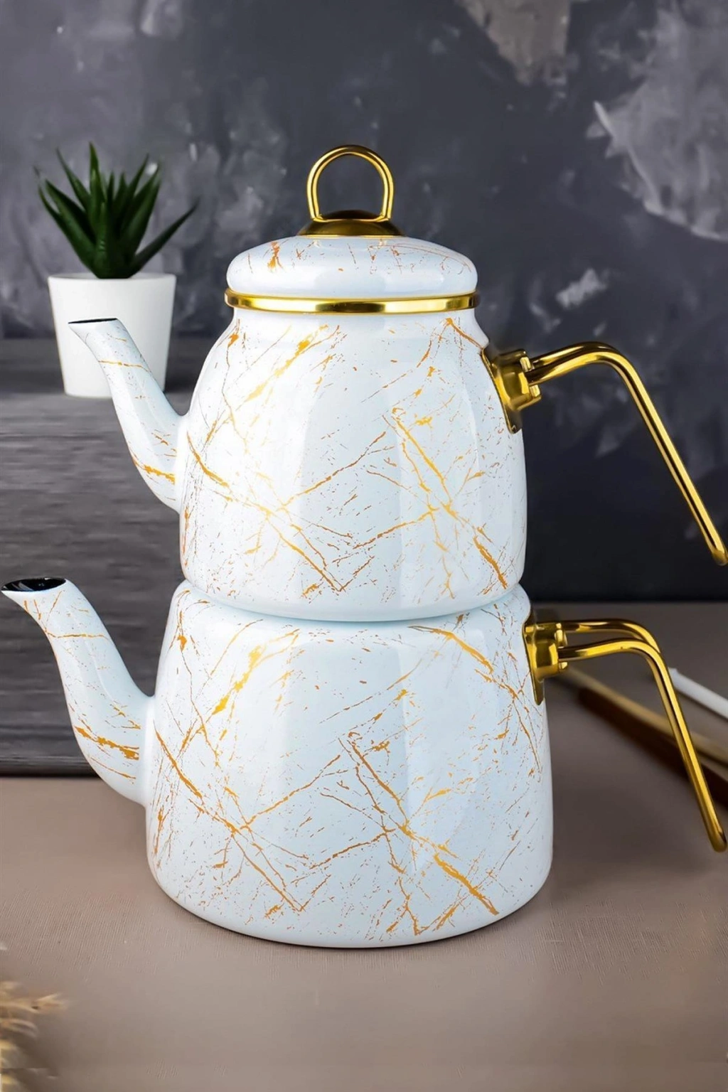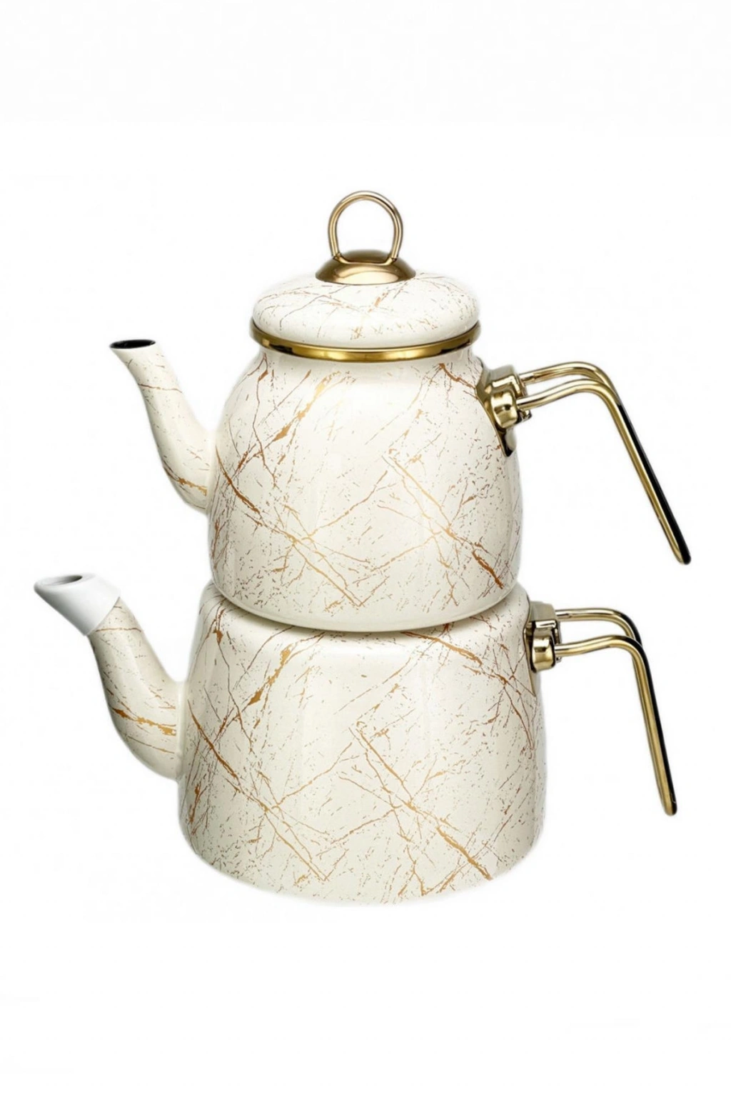 Havana Serisi Emaye Çaydanlık Takımı - Beyaz