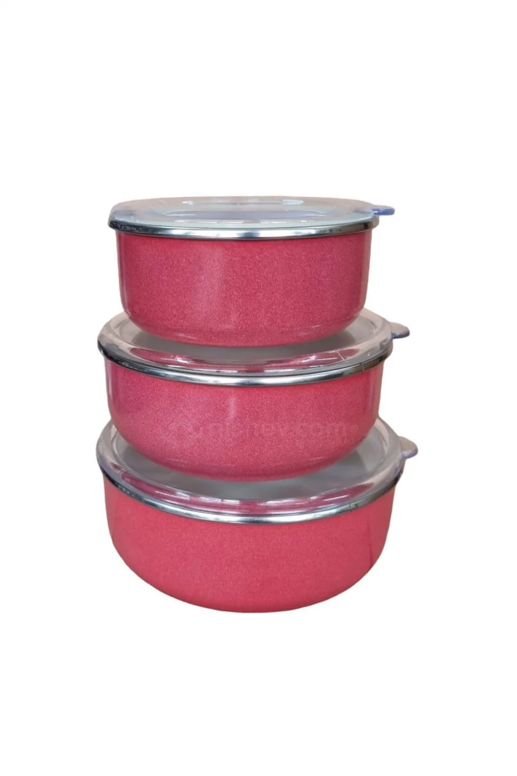 Bu lüks İtalyan emaye saklama seti, mutfak ve banyo düzeninizi yeniler. Kırmızı rengin canlılığıyla sofranıza renk katar.