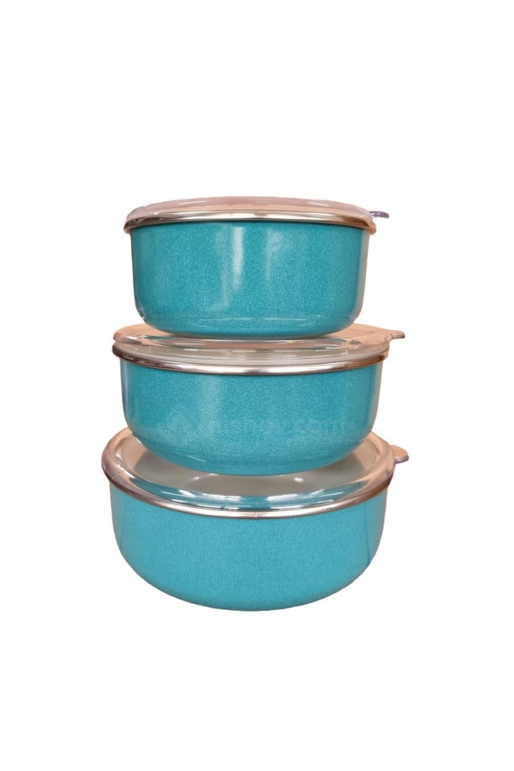 İtalyan 3’lü Emaye Yemek Saklama Kabı Seti 14/16/18 cm – Turkuaz
