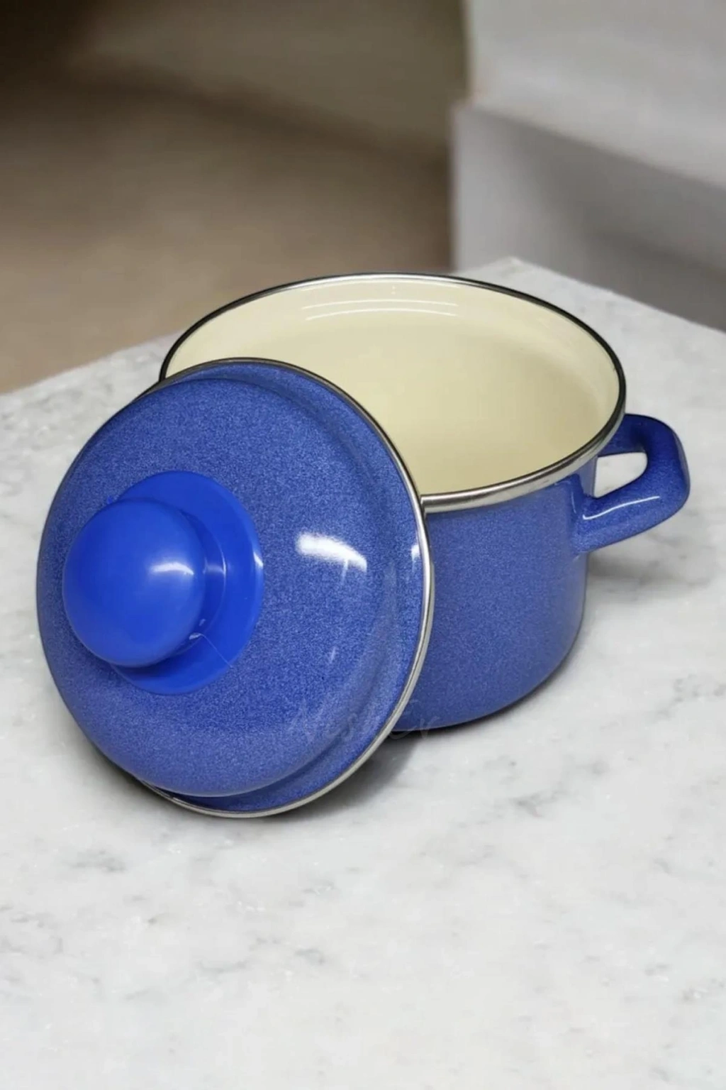 Nishev.com Evini Sev İtalyan Emaye Mini Derin Tencere 12 cm 900 ml – Mavi