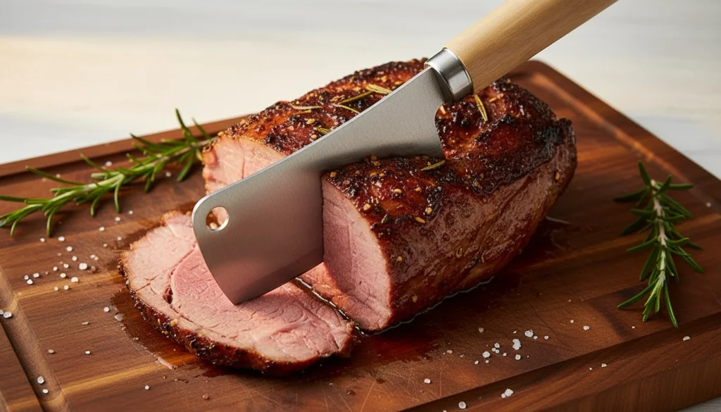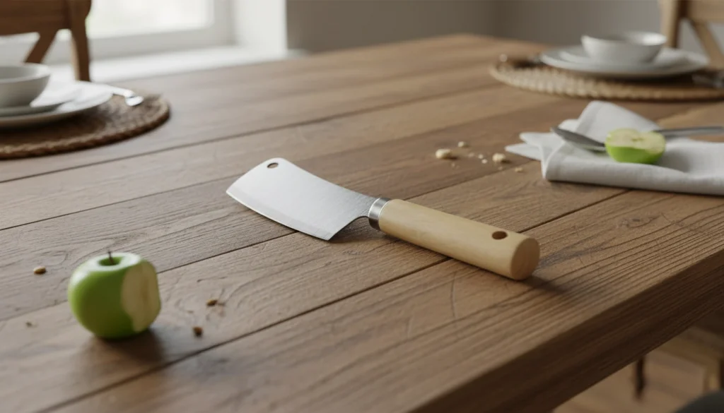 Doğal ve Ergonomik: Yüksek kaliteli ahşap sapı, avuç içine tam oturur ve kontrollü bir kesim sağlar. Doğal dokusuyla sıcak bir sunum atmosferi yaratır.