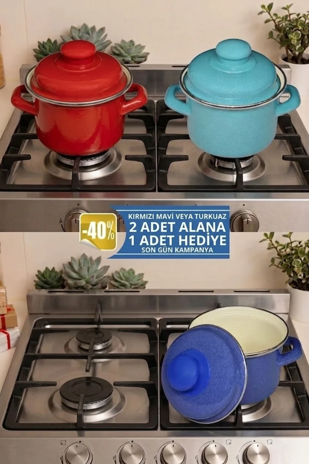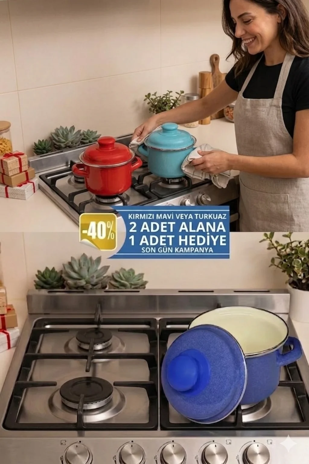 Şimdi Almanın Tam Zamanı! Görseldeki özel kampanyamız kapsamında; seçtiğiniz renklerde 2 adet mini tencere alana, 1 adet hediye ediyoruz! Üstelik ek %40'a varan indirim fırsatıyla sağlıklı emaye kalitesine en avantajlı şekilde sahip olabilirsiniz.