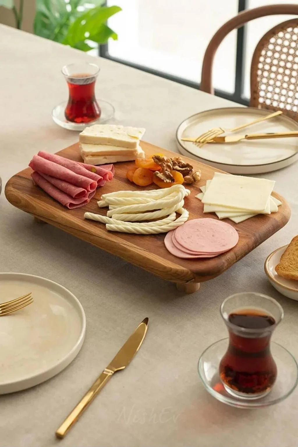 Bu şık tabak, 33cm x 22cm ölçülerinde, doğal kayın ağacından özenle işlenmiştir. Ayaklı tasarımı sayesinde hem stabil hem de şık bir sunum sağlar.