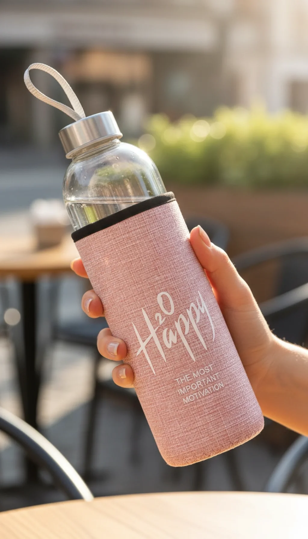 Cam malzeme, BPA içermeyen ve çevre dostu bir seçenek sunar. İçerdiğiniz su, çay veya meyve suları hiçbir zaman tadını veya kokusunu kaybetmez.
