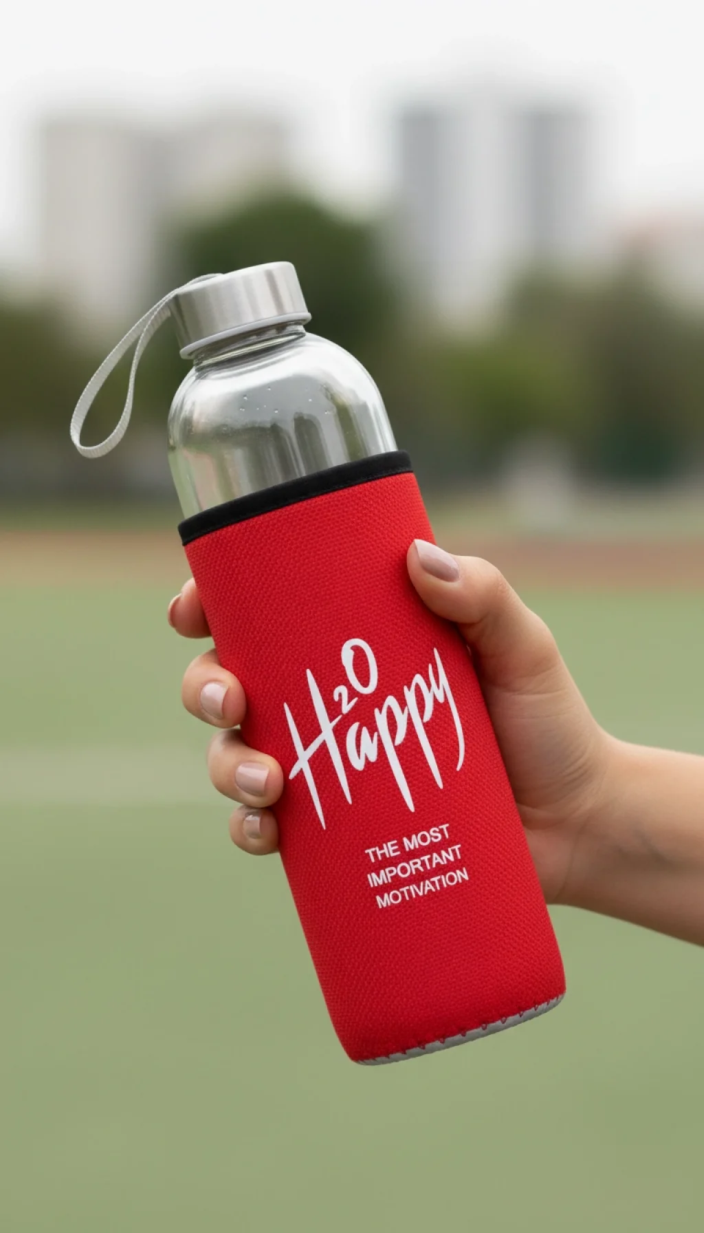 Premium Kılıflı Cam Matara 500 ml – Kırmızı