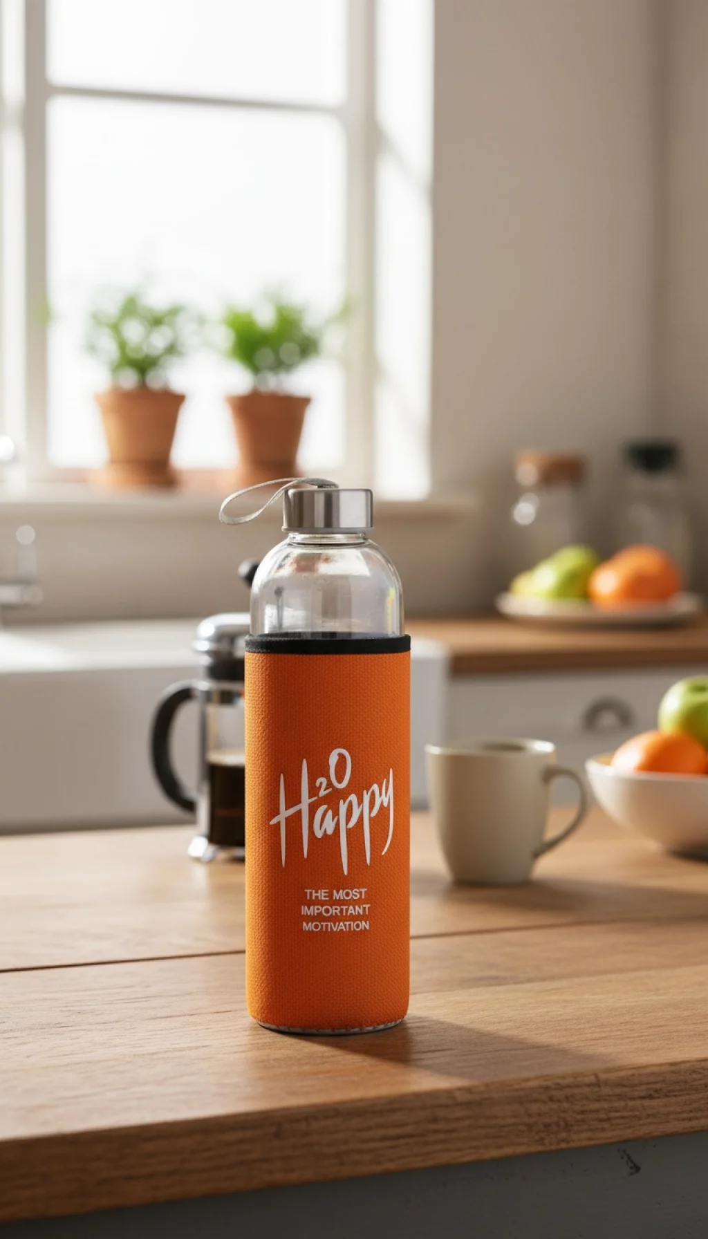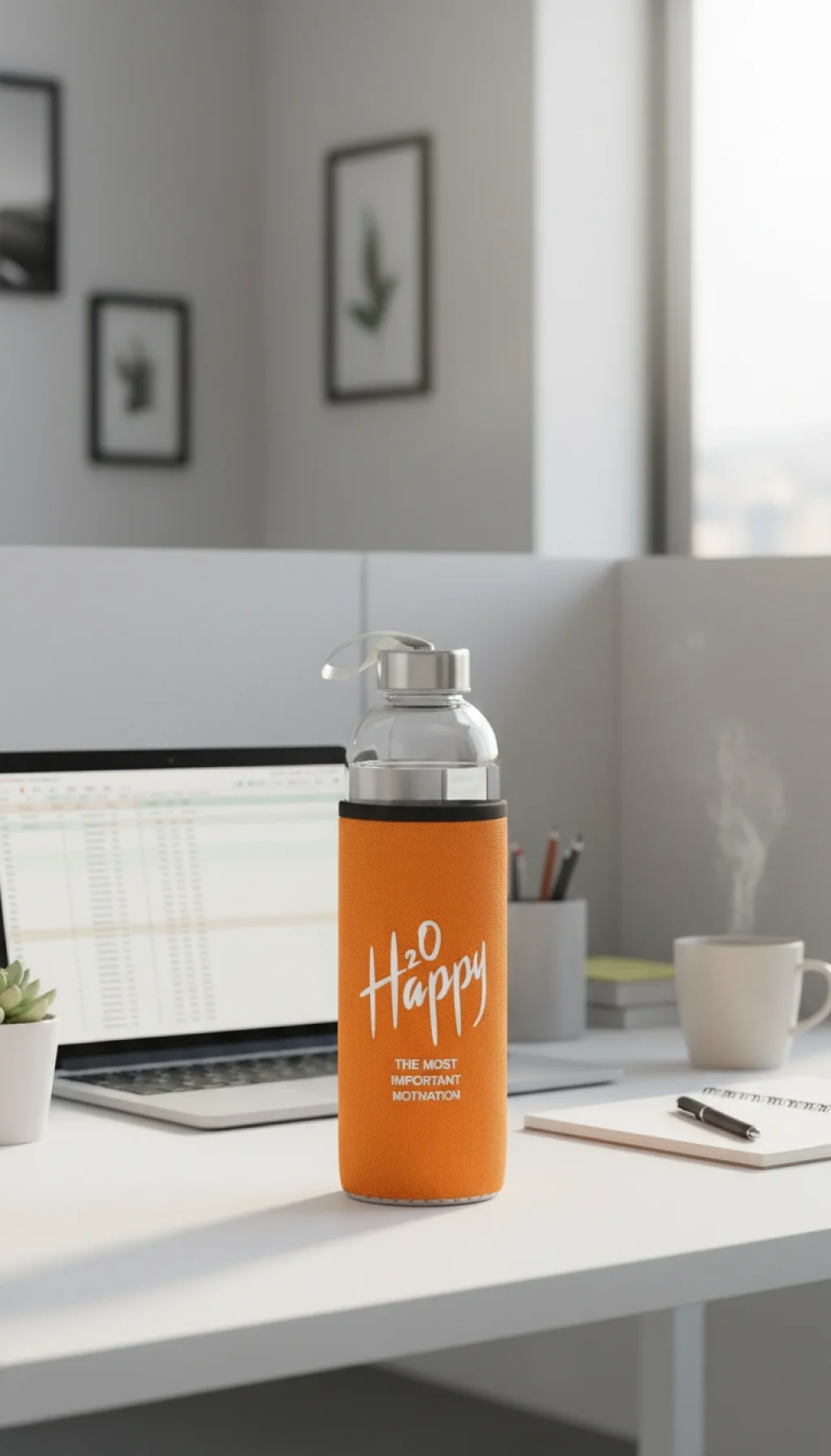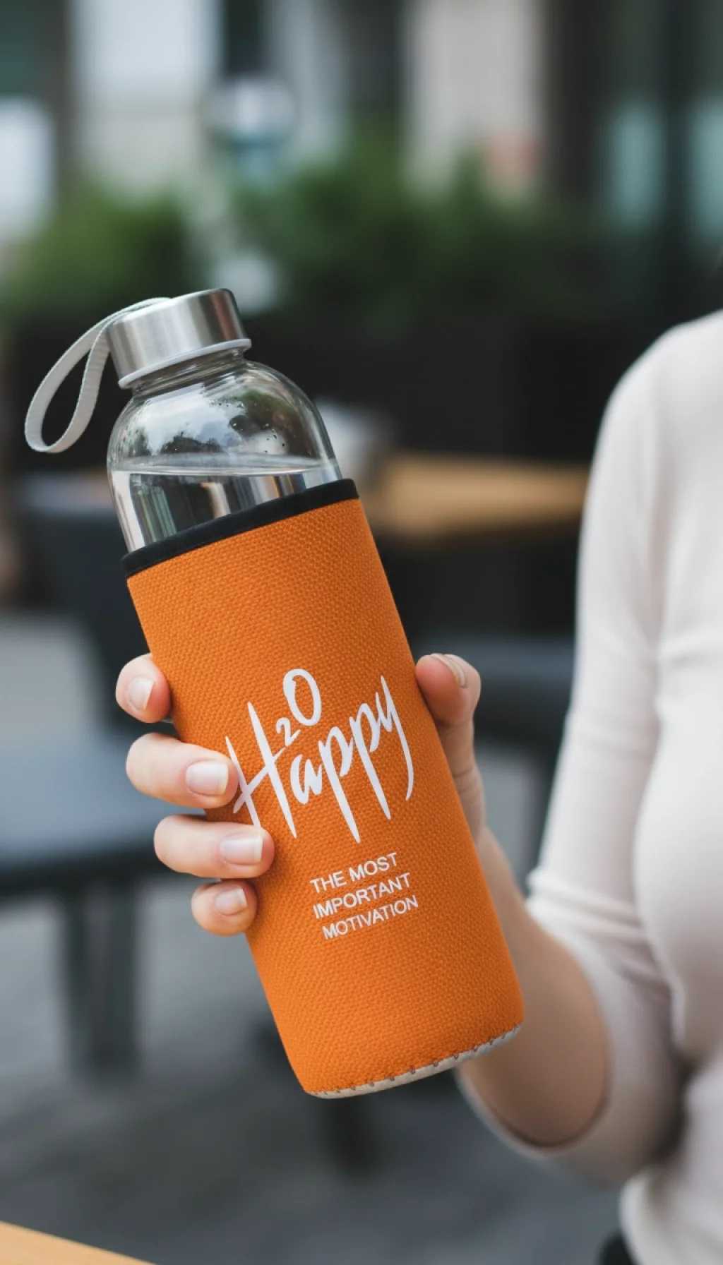 Bu şık turuncu matara, 500 ml'lik geniş hacmiyle gün boyu su ihtiyacınızı karşılamaya uygun, aynı zamanda BPA içermeyen cam yapısı sayesinde sağlığınızı korur. Dışındaki koruyucu kılıf, darbelere karşı ekstra güvenlik sağlar ve şık görünümü tamamlar.
