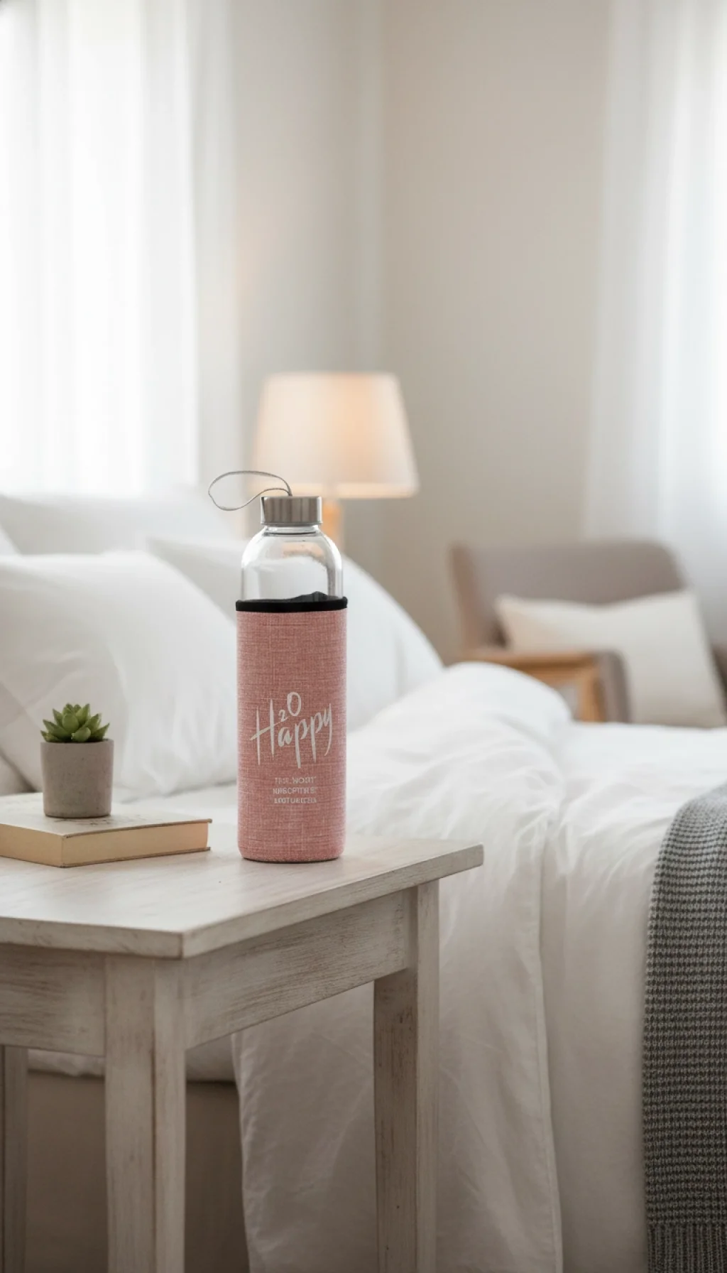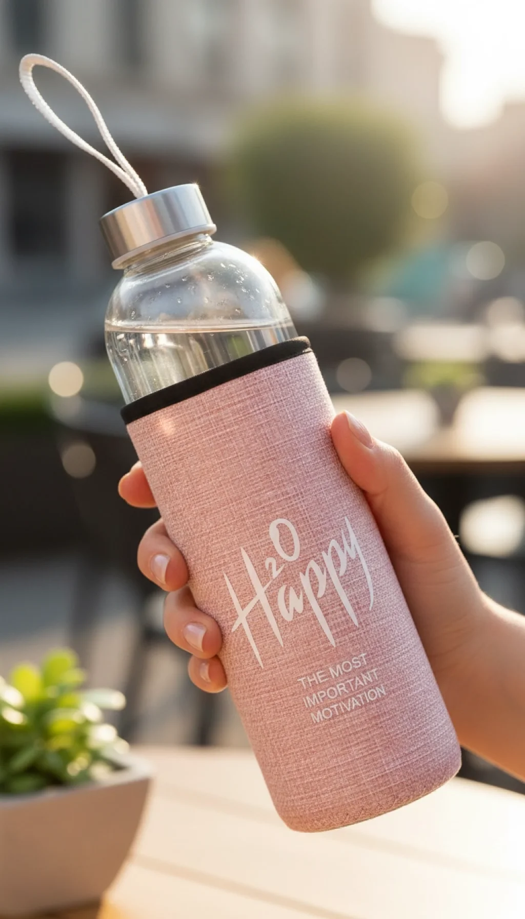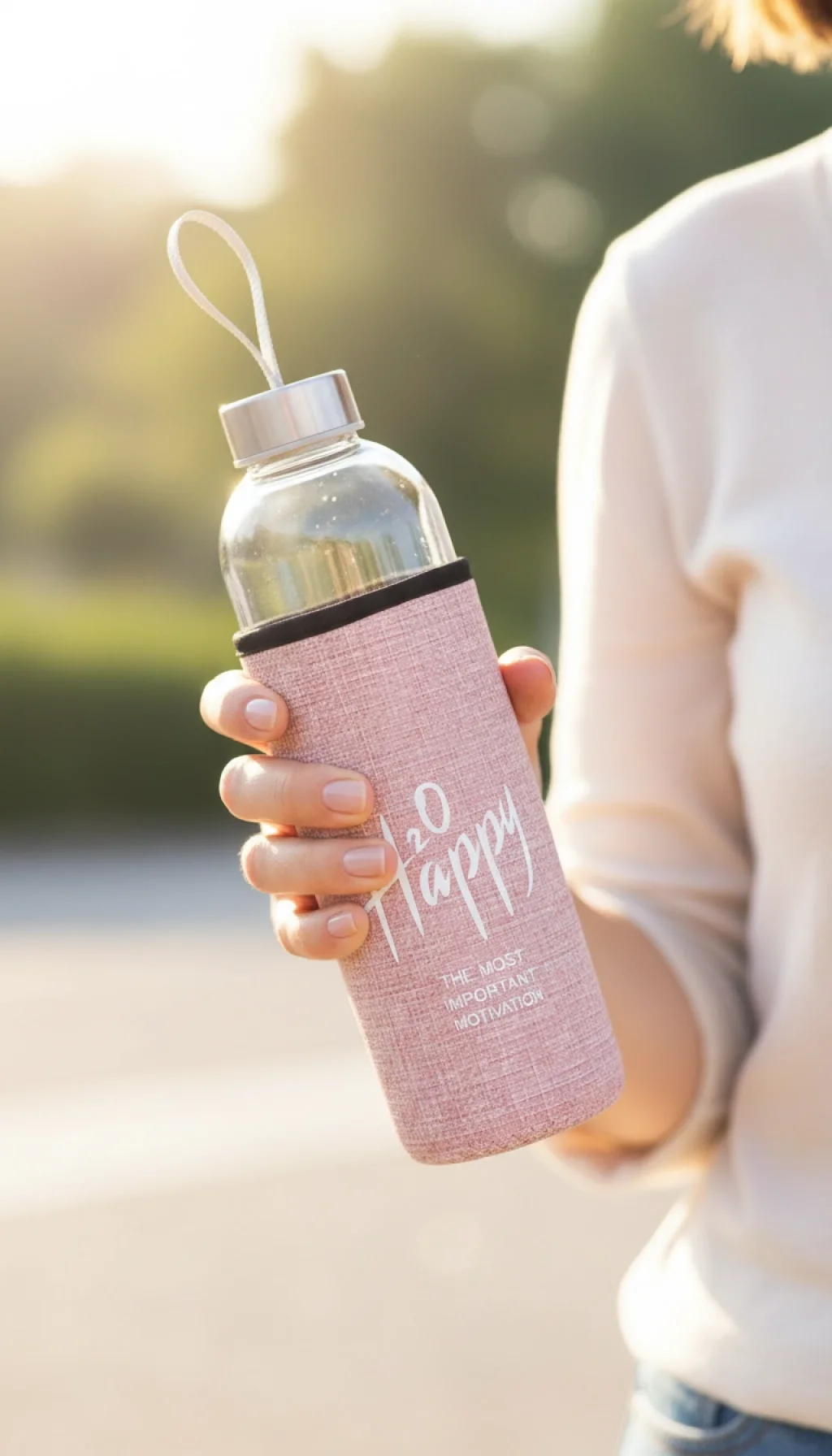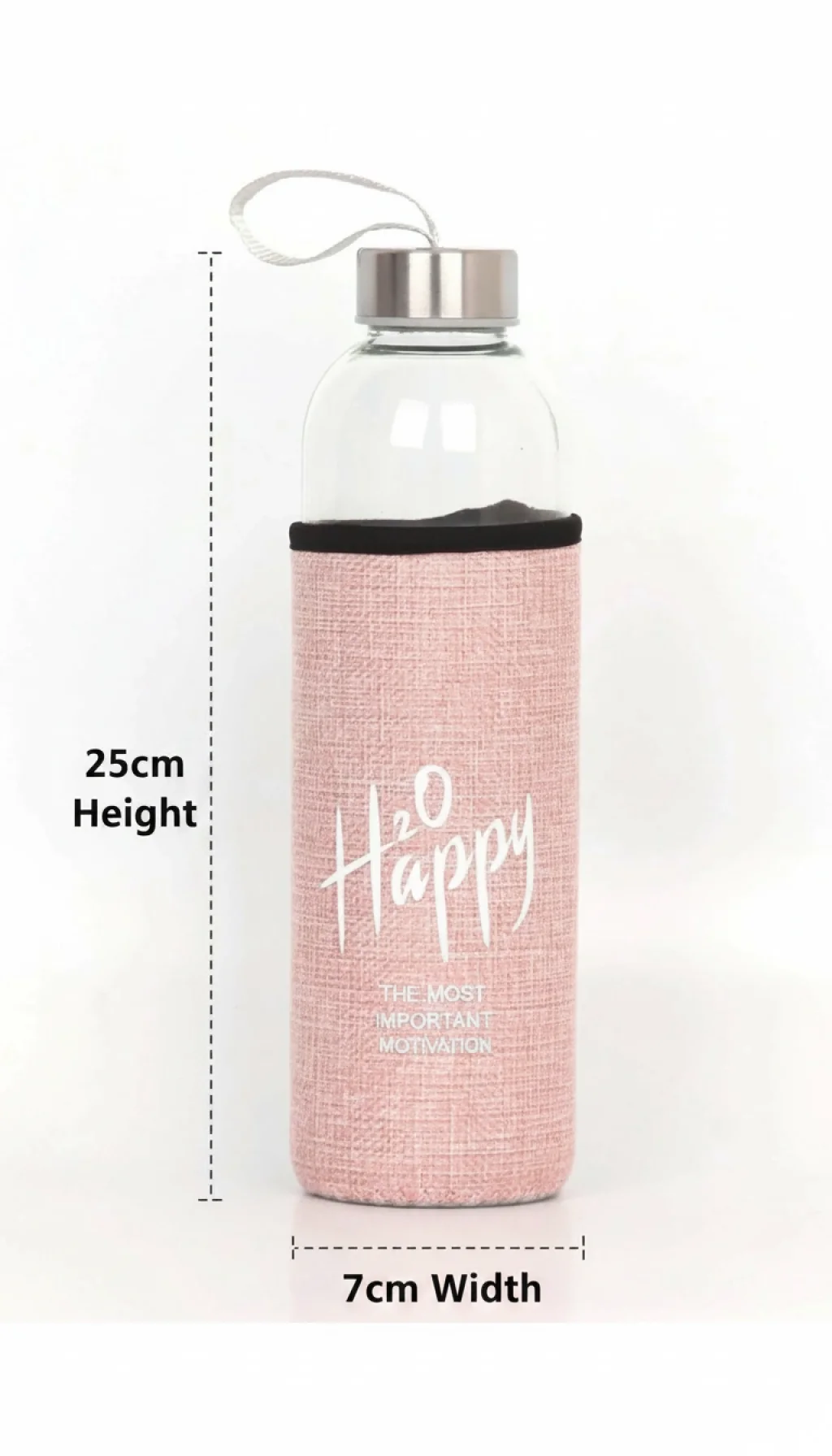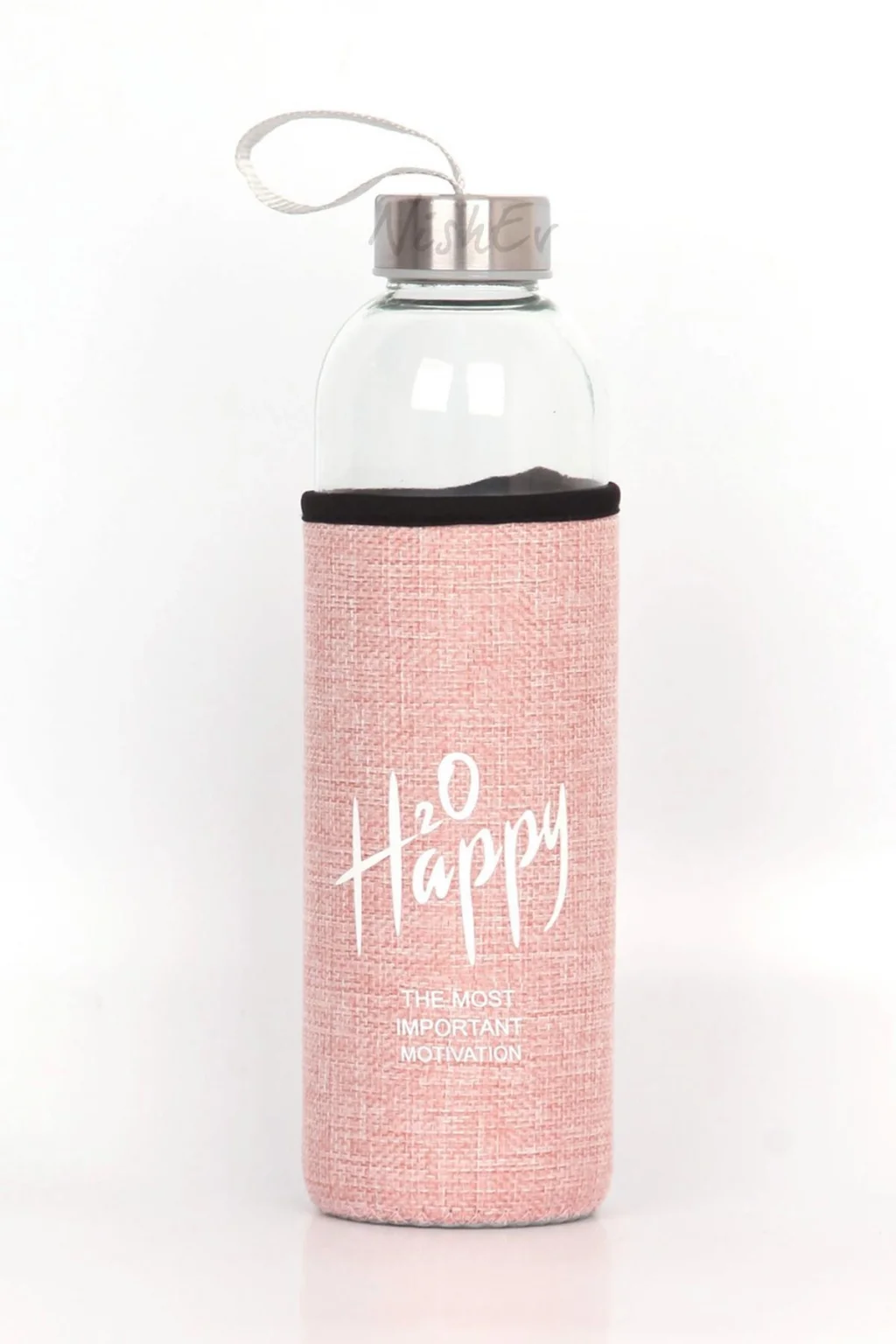 Premium Kılıflı Cam Matara 750 ml – Açık Pembe