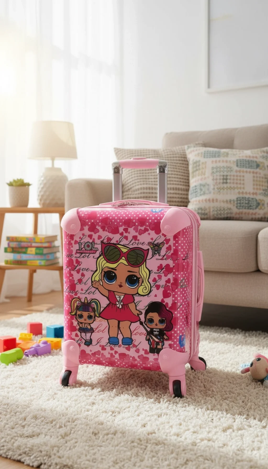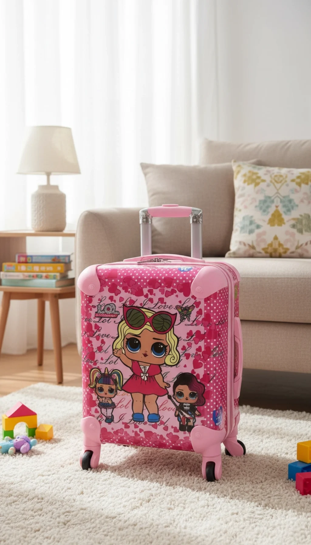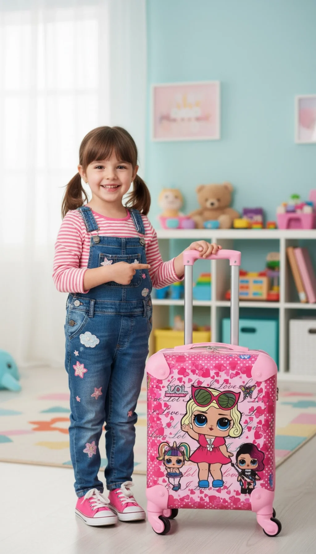 Çocuklarınızın seyahat deneyimini bir adım öteye taşıyan pembe lol baskılı valiz, hem şıklığı hem de dayanıklılığıyla öne çıkar.