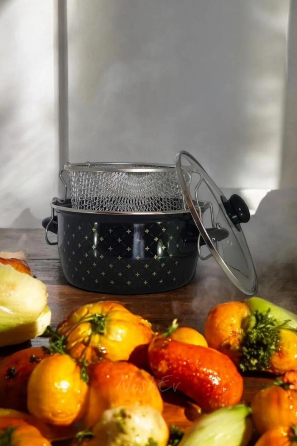 Lüks Italyan Emaye Fritöz Kızartma Tenceresi 22 Cm 3,5 Lt