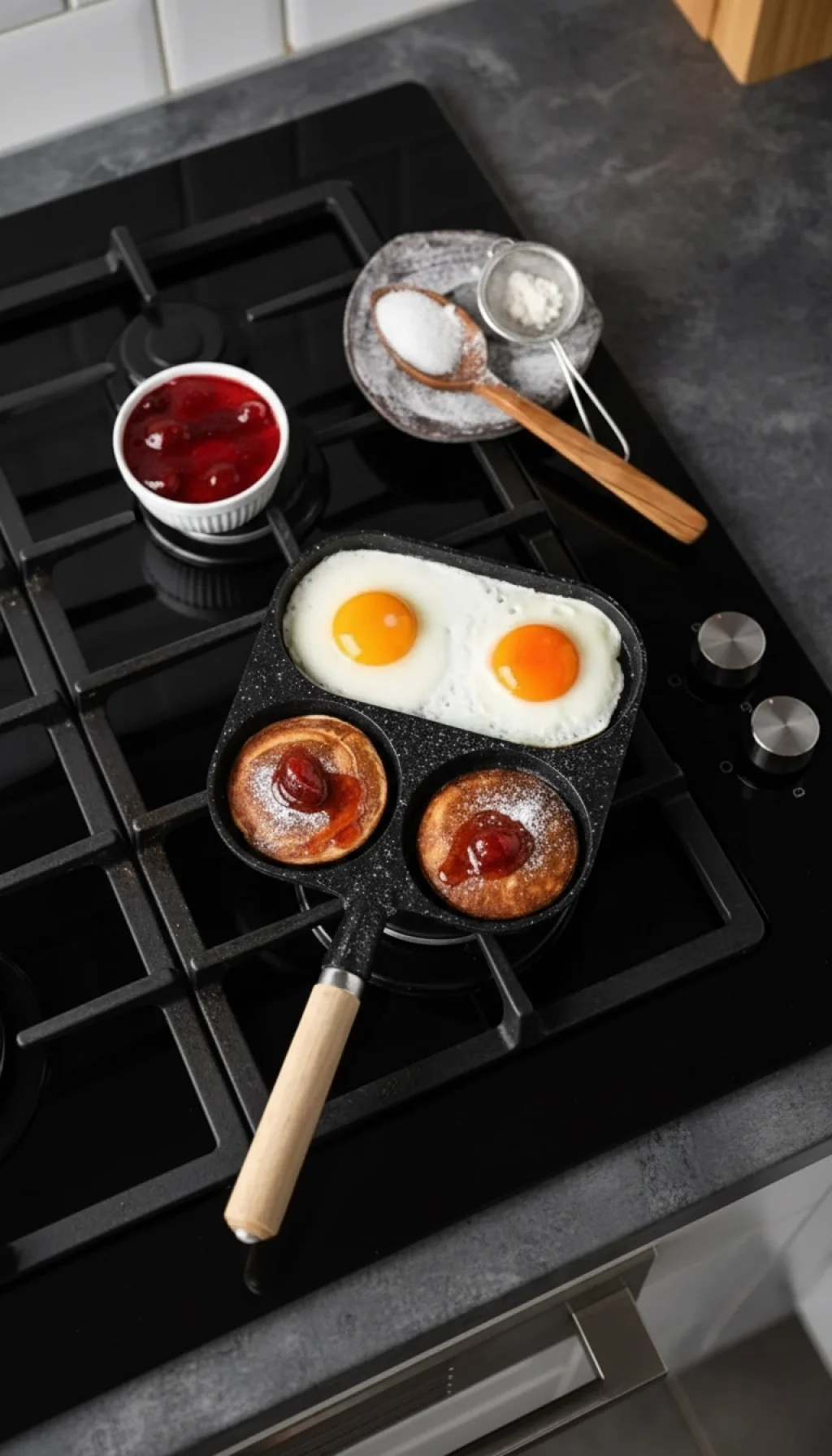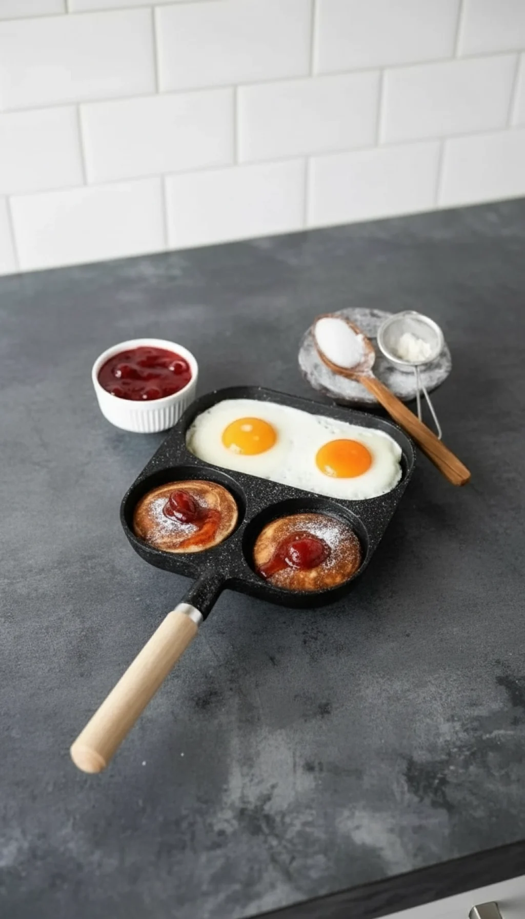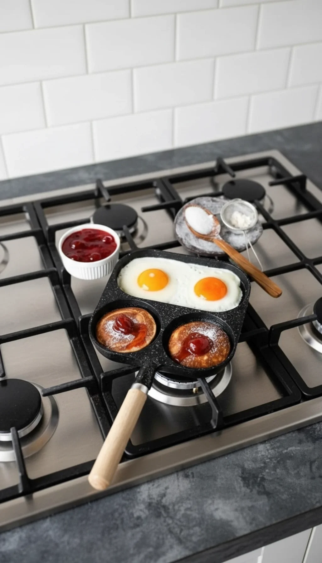 Çok Fonksiyonlu Tasarım: Tek bir yüzeyde 3 farklı bölme sayesinde malzemeler birbirine karışmaz. Bir bölmede iki yumurta, diğer iki bölmede ise tatlı veya tuzlu atıştırmalıklar pişirebilirsiniz.
