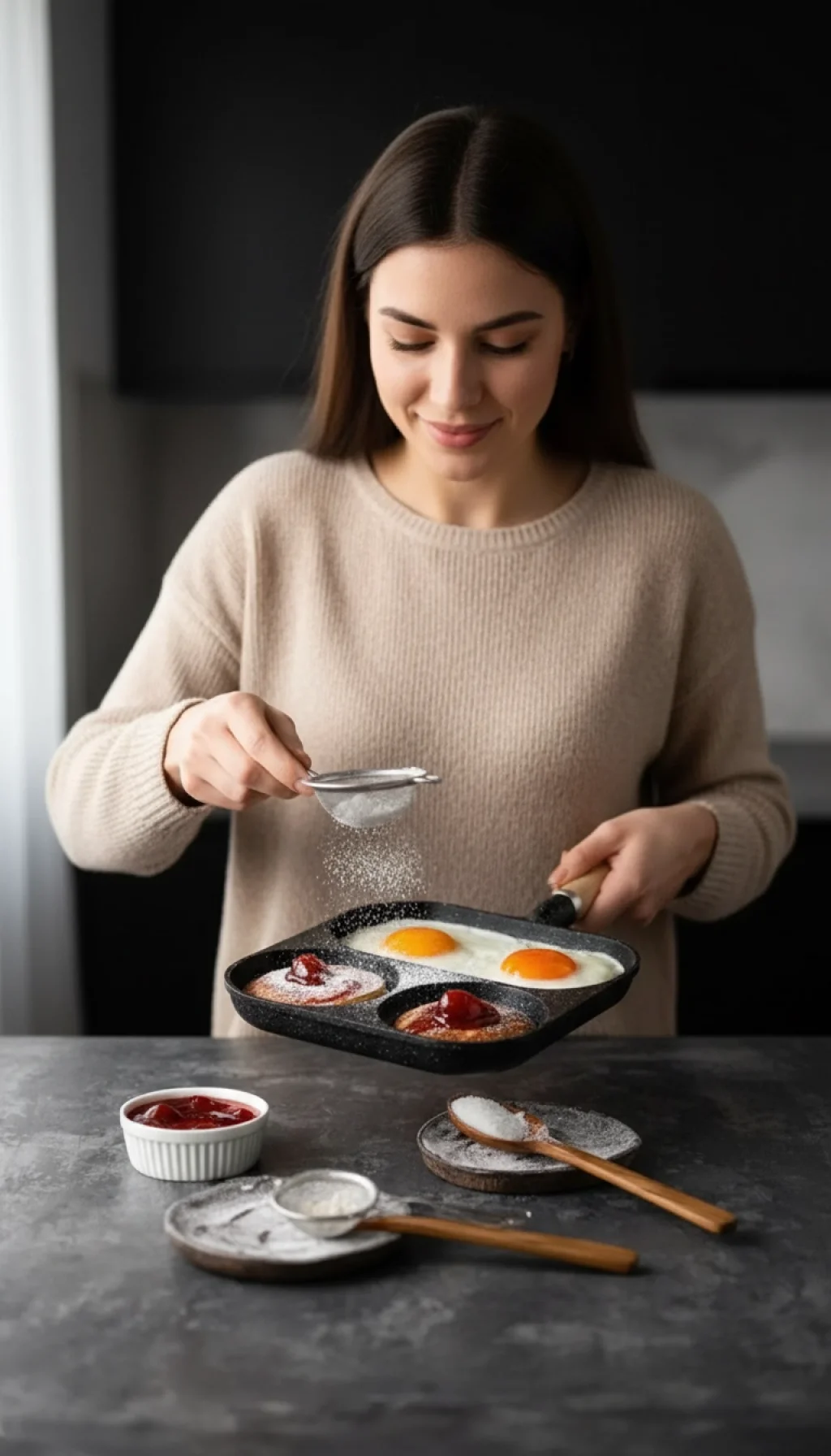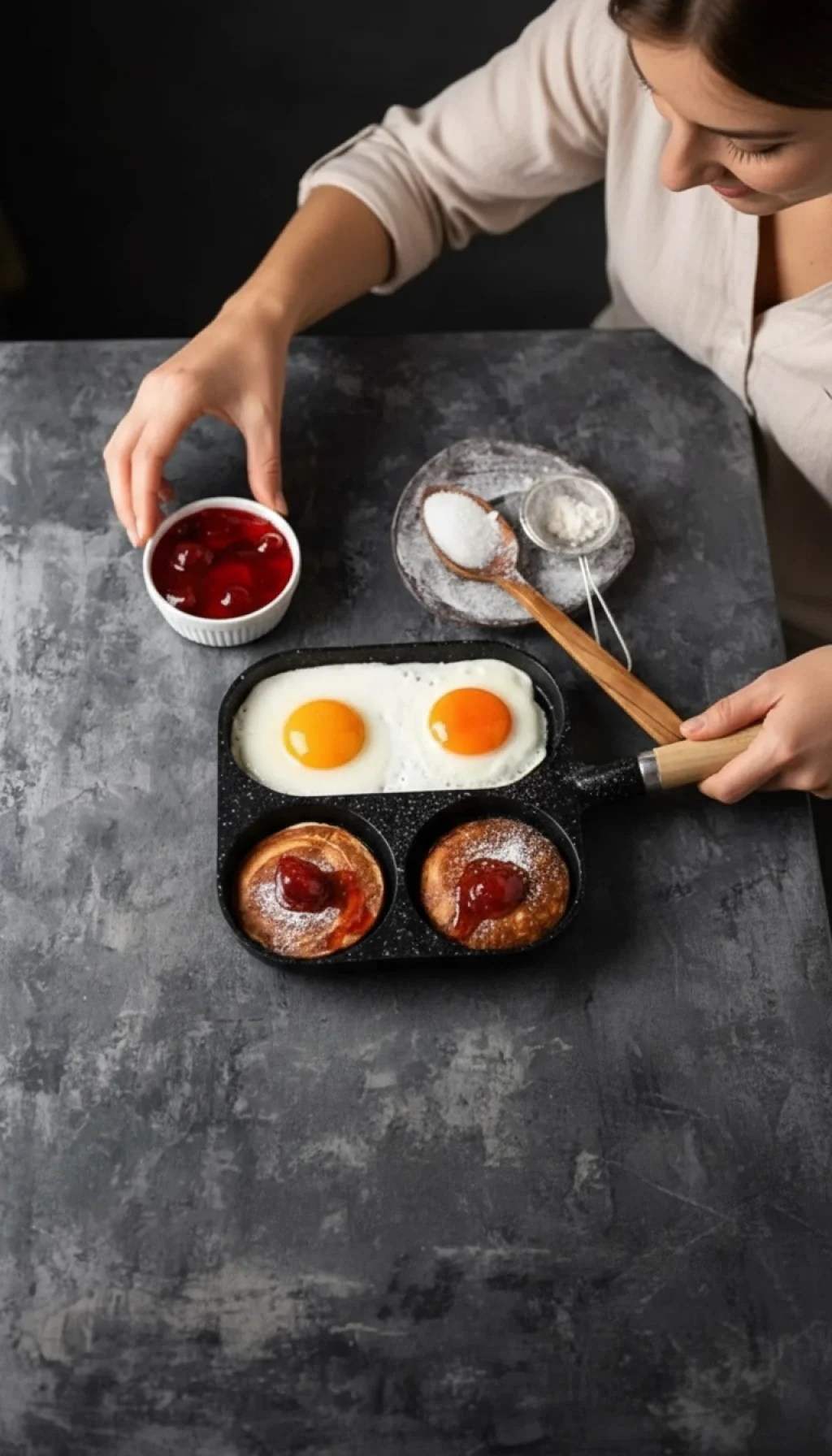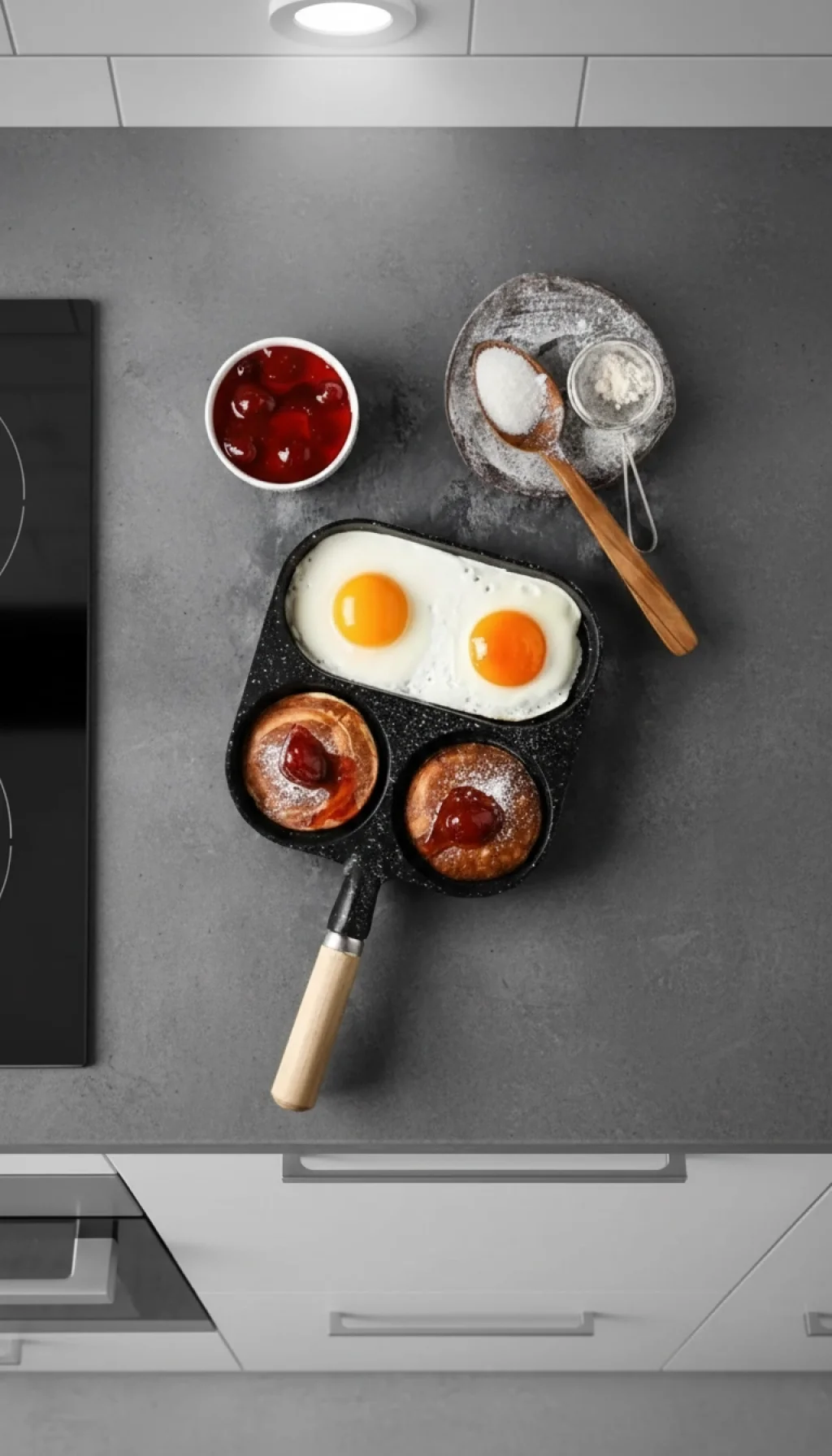 Aynı anda hem formunu bozmadan yumurtalarınızı pişirebilir, hem de yan bölmelerde tam kıvamında pancake veya krepler hazırlayabilirsiniz.
