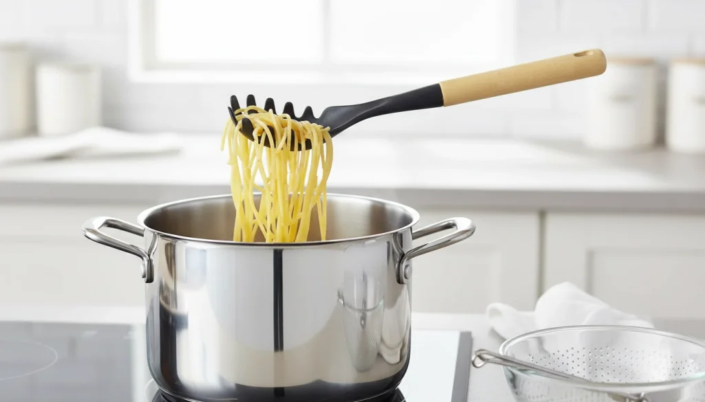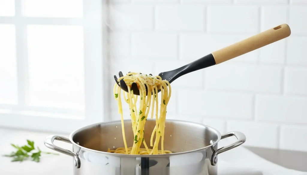 Bu premium ahşap makarna kepçesi, BPA içermeyen doğal ahşap sapı sayesinde sağlıklı bir kullanım sunar. Tek parça tasarımı sayesinde hijyenik ve kolay temizlenir.